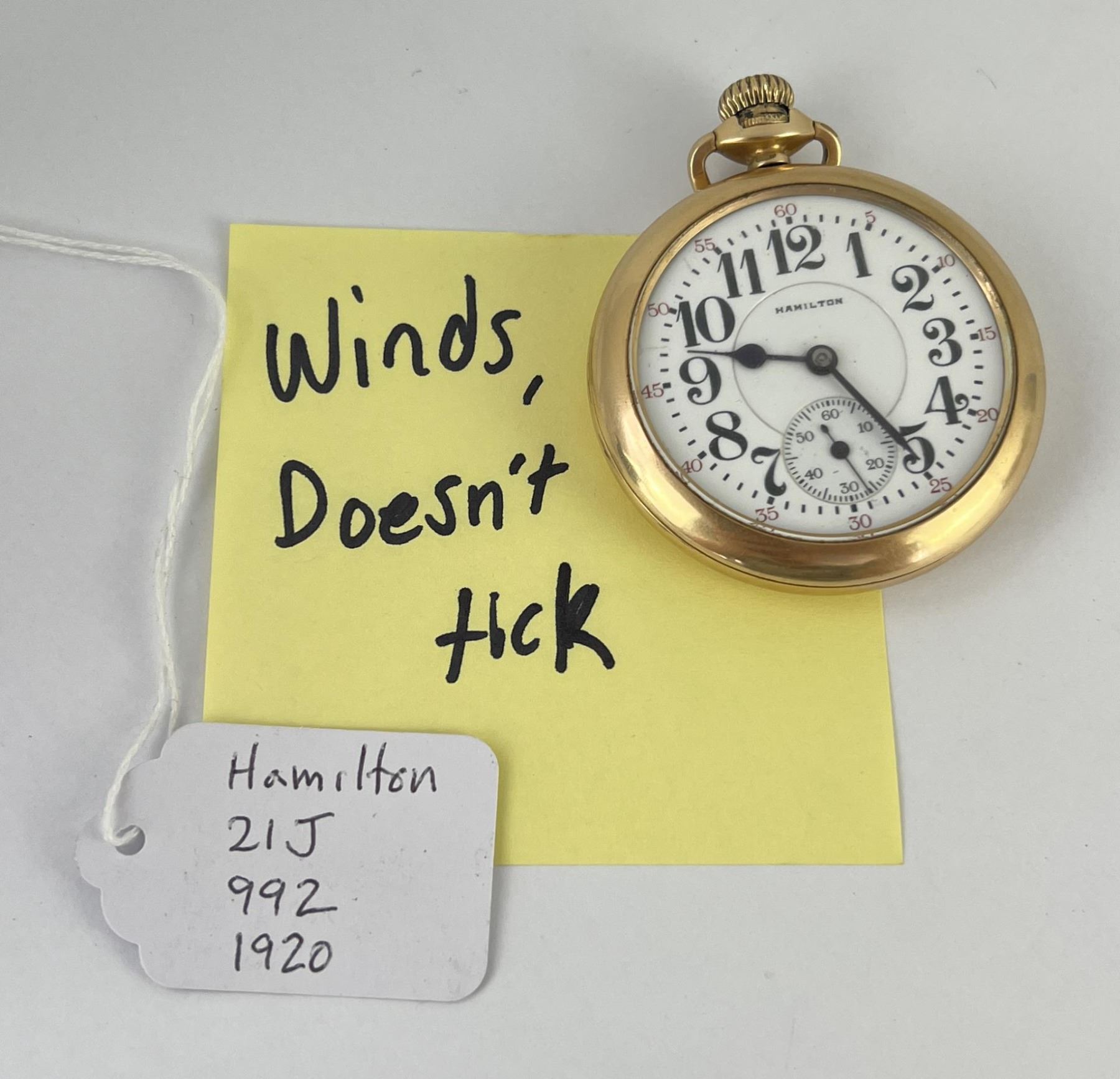 Made in 1920, 21J. Winds but does not run.
