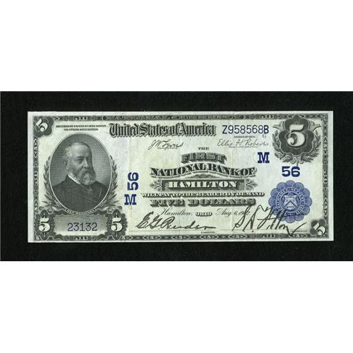 Hamilton, OH - $5 1902 Plain Back Fr. 598 The Fi