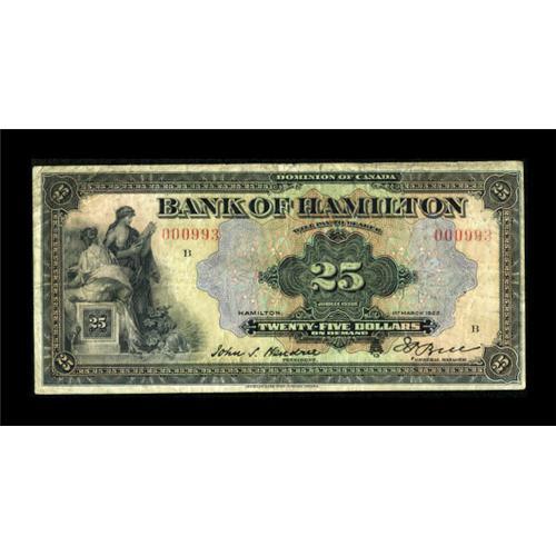 Hamilton, ON- Bank of Hamilton $25 Mar. 1, 1922