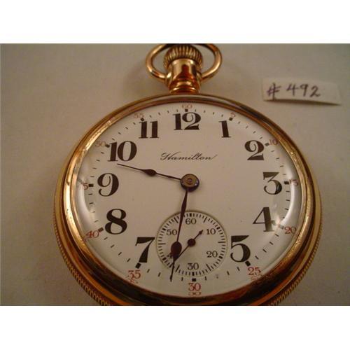 Hamilton Pocket Watch Size 18 which is a larger sized watch..it has 17 jewels model #932 with a yellow gold filled case..the case is rare it is called a swing out case..that is in good conditon..no brassing..the dial is also in good condition..the watch has been serviced and is keeping good time...I have been a watchmaker for over 59 years and have owned and operated my own stores for much of that time..please view my other items..thanks!