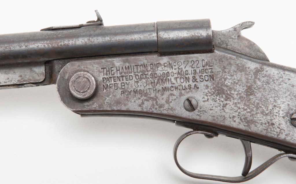 Hamilton single shot child’s rifle, .22 cal., blue finish, wood stock, #NVSN; working action, good stock, dark bore, missing some parts; sold as parts only; must be registered. (C&R). Est.: $15-$30.