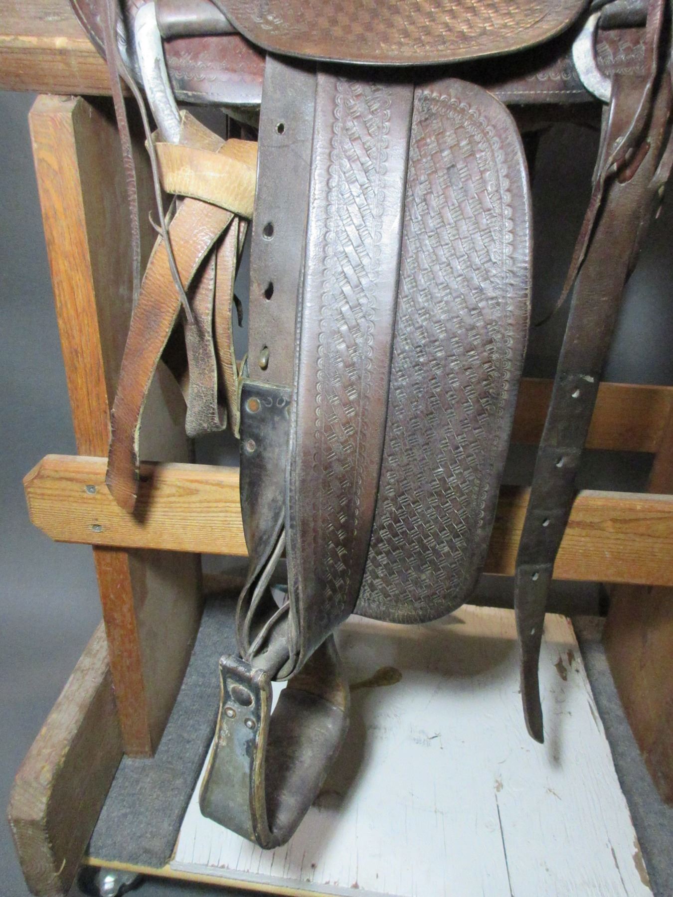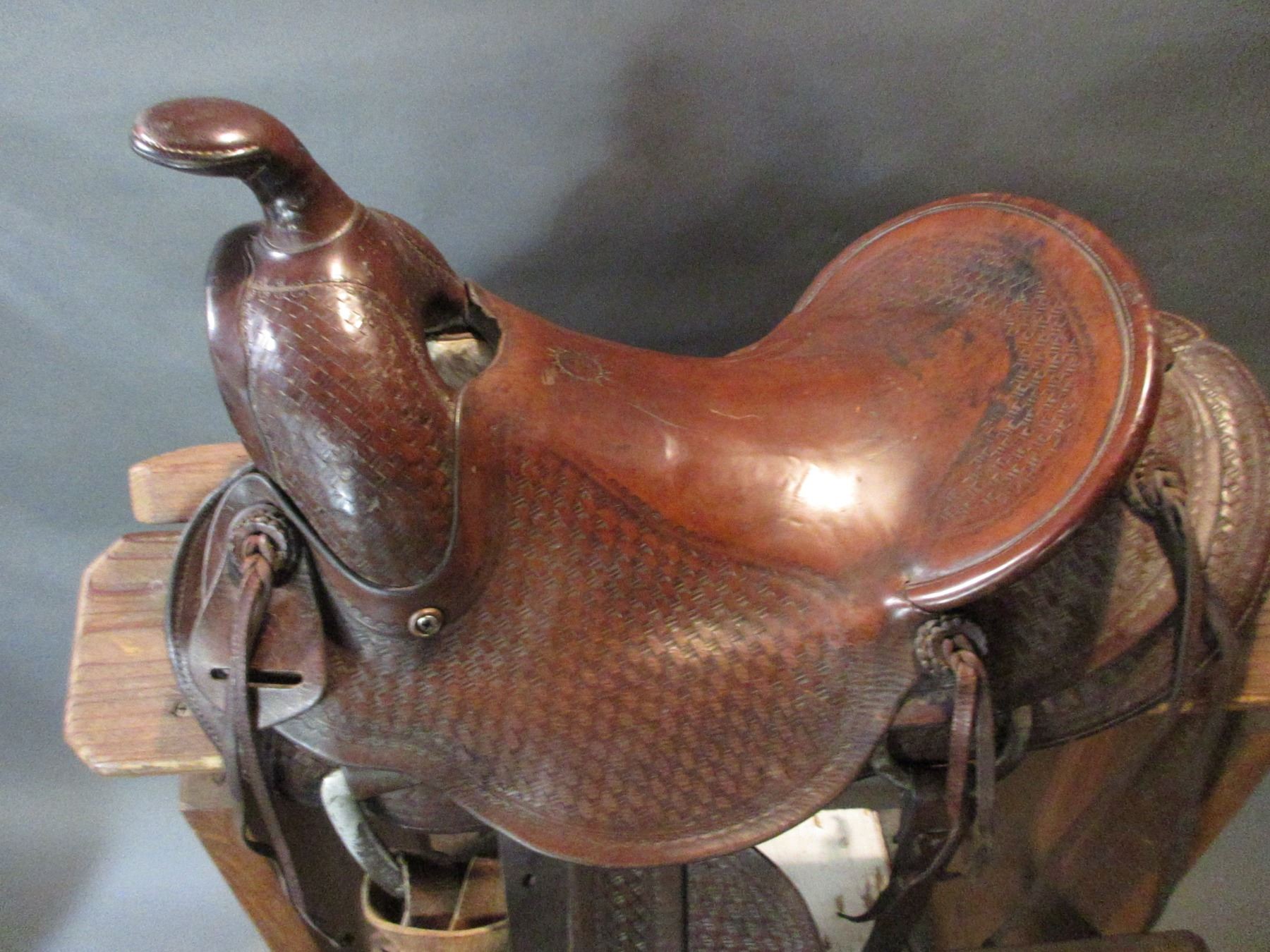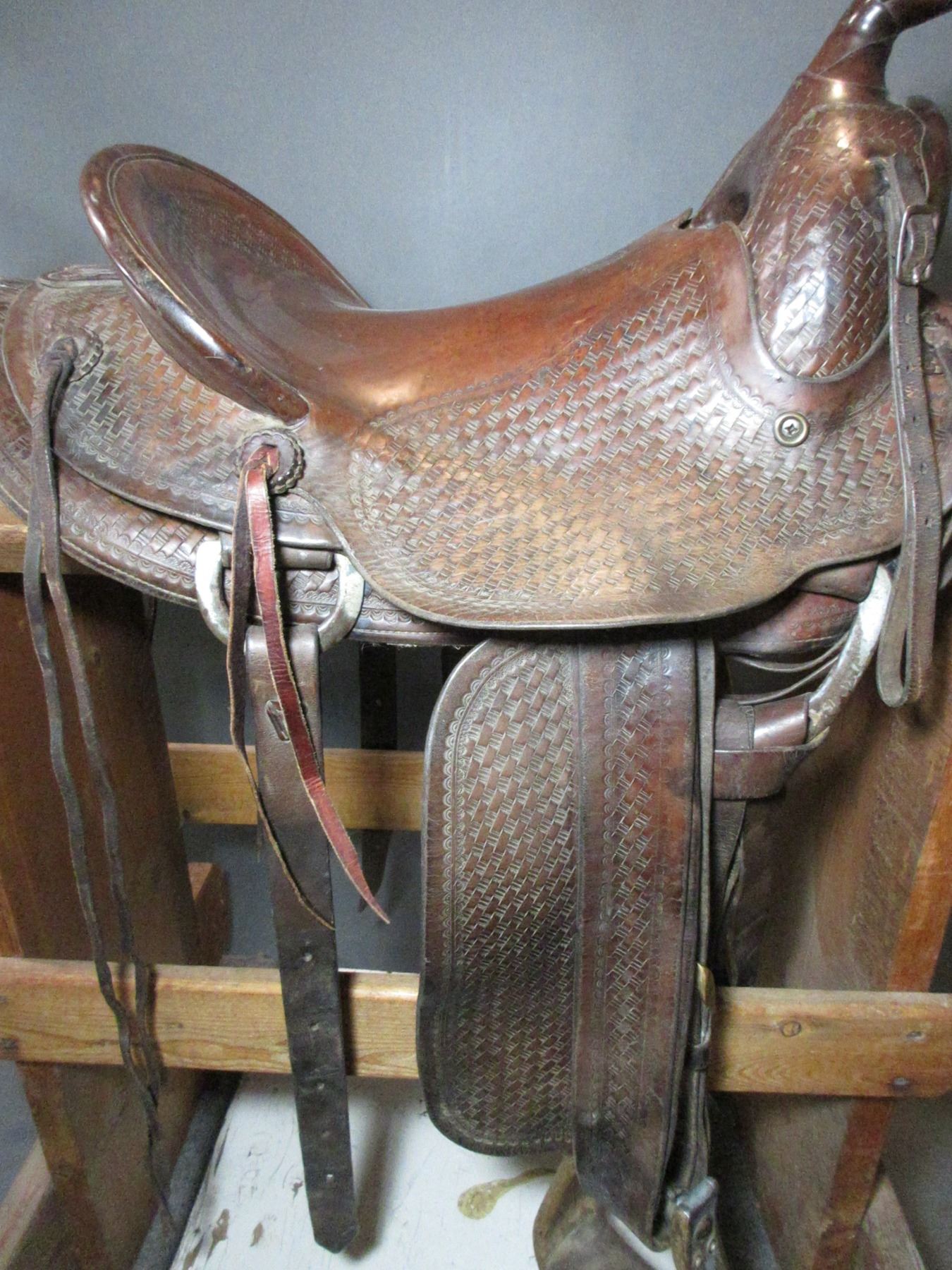 Hamley Saddle With Factory Letter- Possibly The First Saddle Made By Duff Severe When He Worked For Hamley- 4-24-46- 14.5" Seat- Basket Stamped- Good Sheapskin- Good Condition