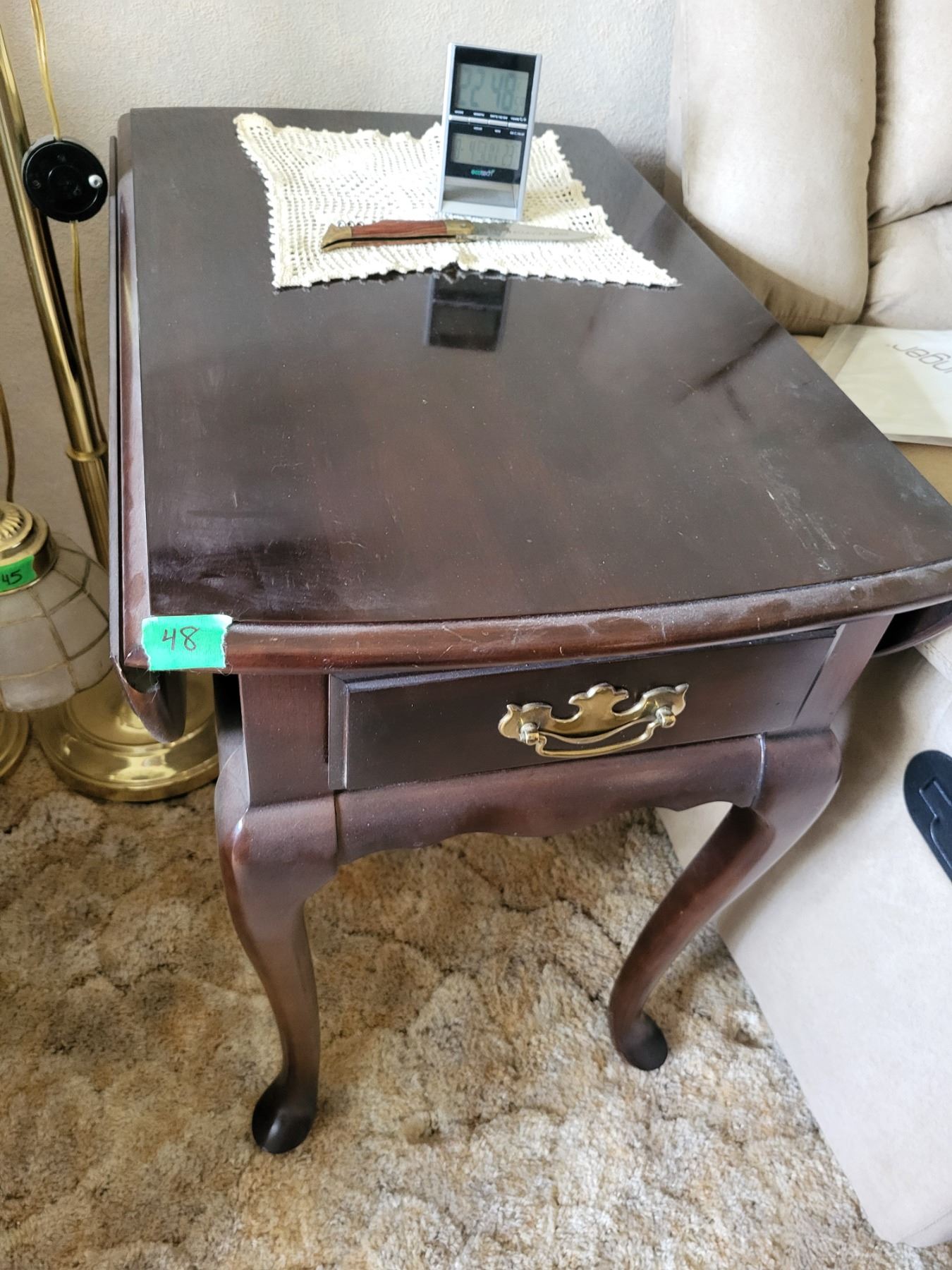 Hammary End Table with Contents - Knife Vintage Doilies +. End Table Measures 18x28x25", Drop Leaves Measures 9"