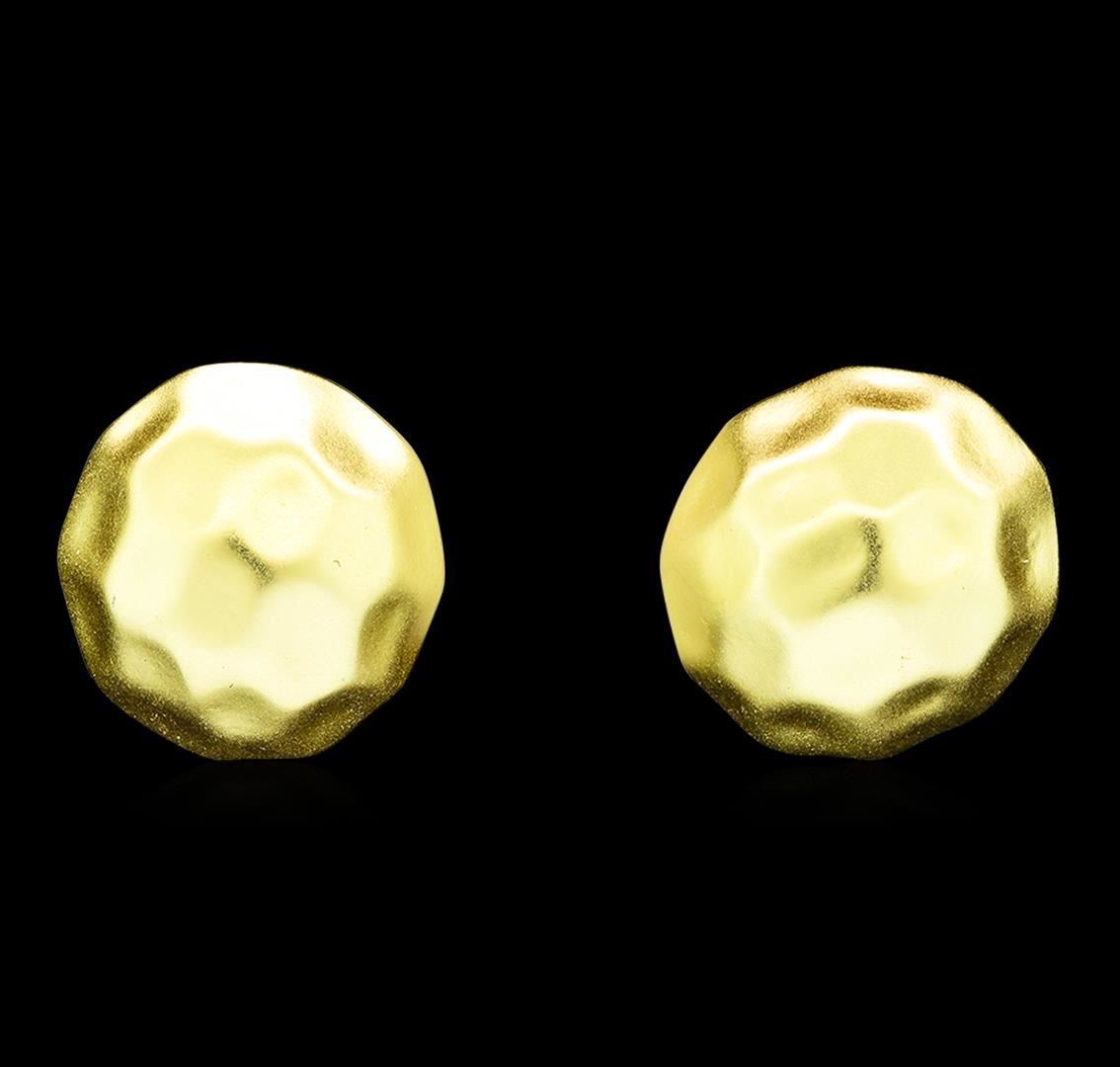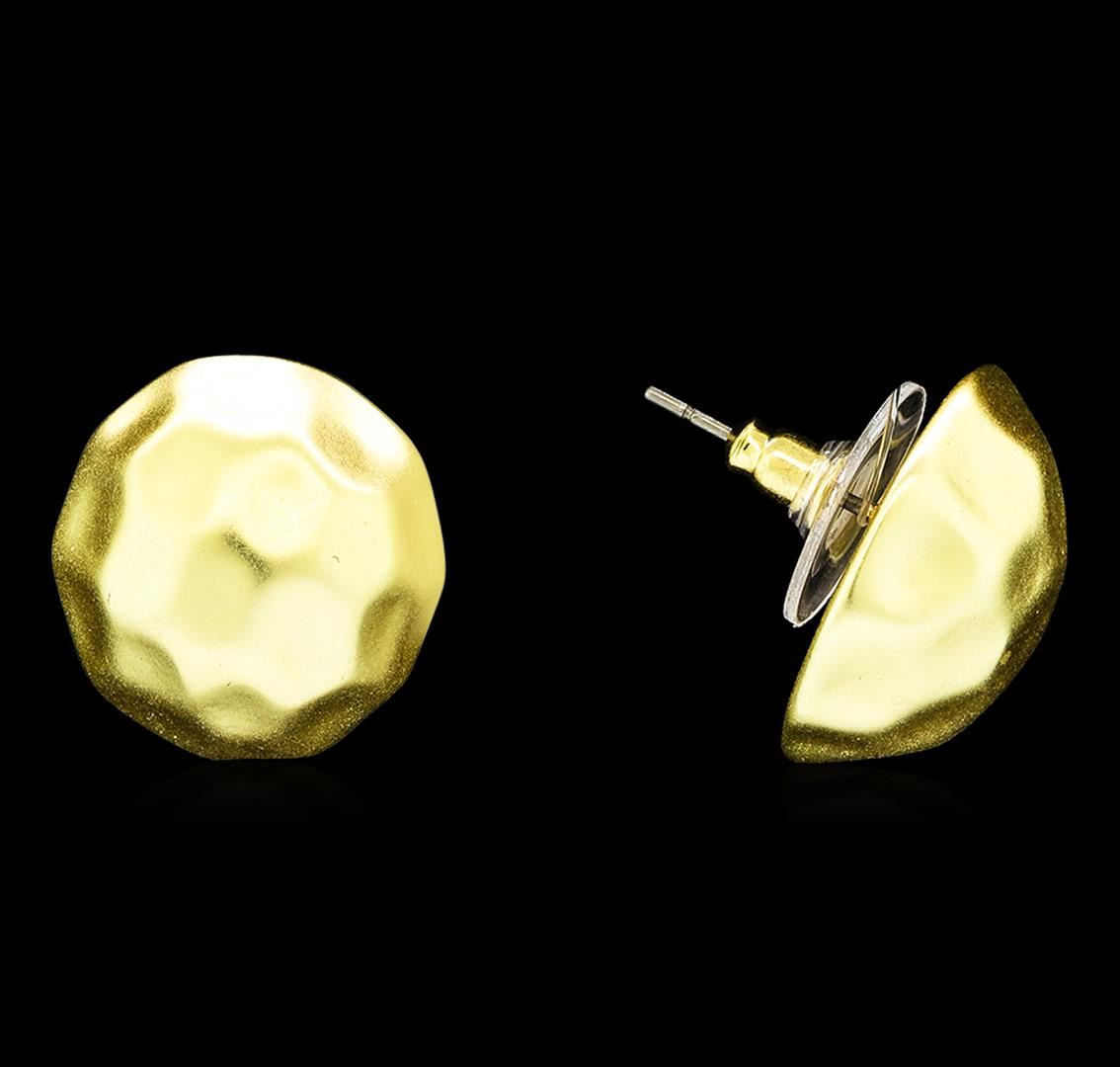 High end designer jewelry. Hammered Button Stud Earrings - Gold Plated. Gold Plated Metal. Gold. Post. Total Weight: 8.9 grams.