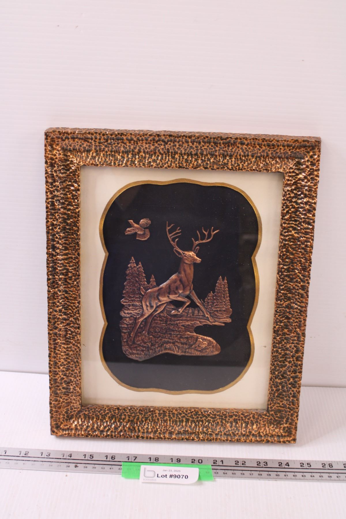 Hammered Copper Craft Woodland Art Picture in Frame - 12" x 15"