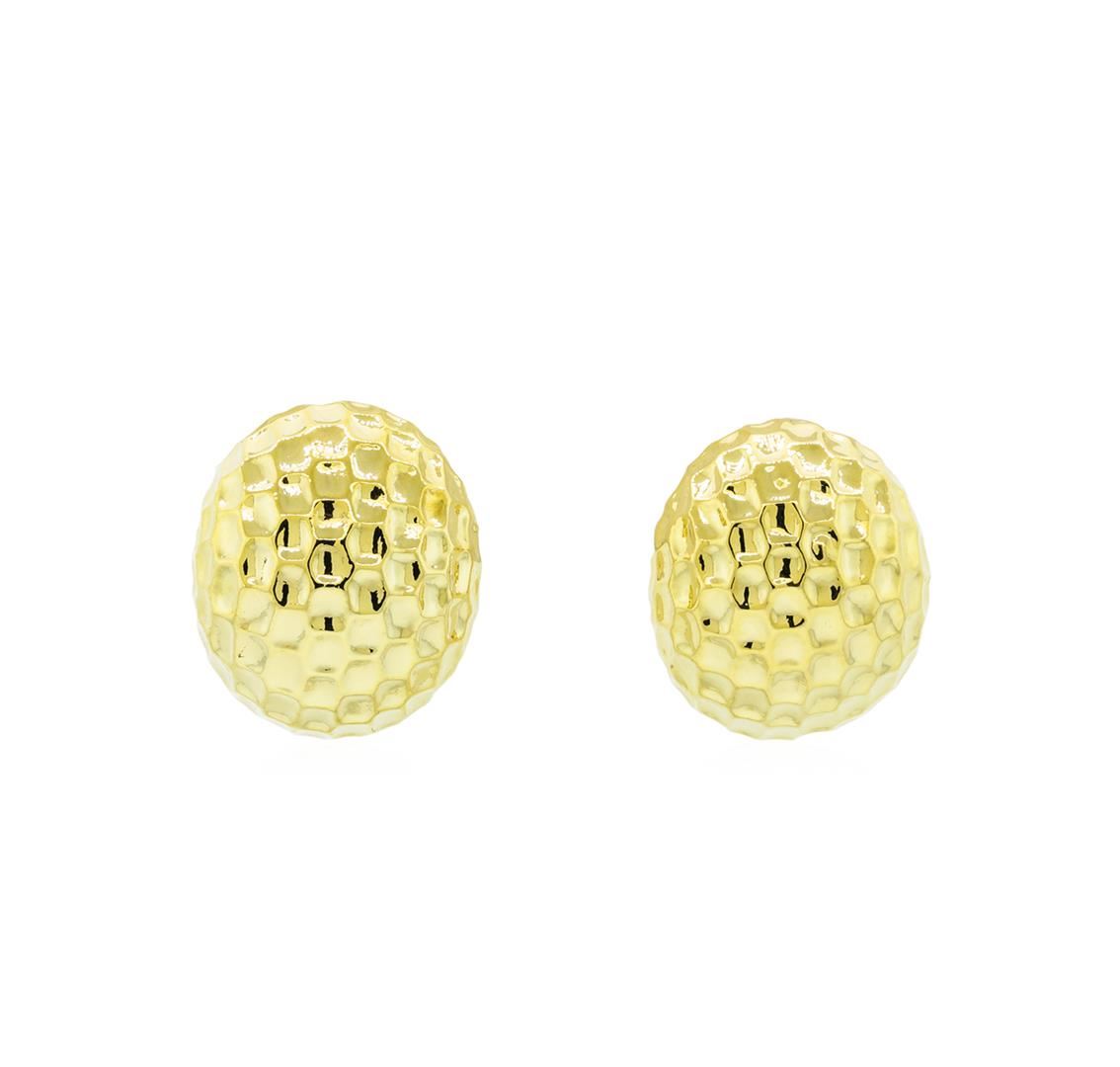 High end designer jewelry. Hammered Metal Oval Earrings - Gold Plated. Gold Plated French Clip. Gold. 1inches.