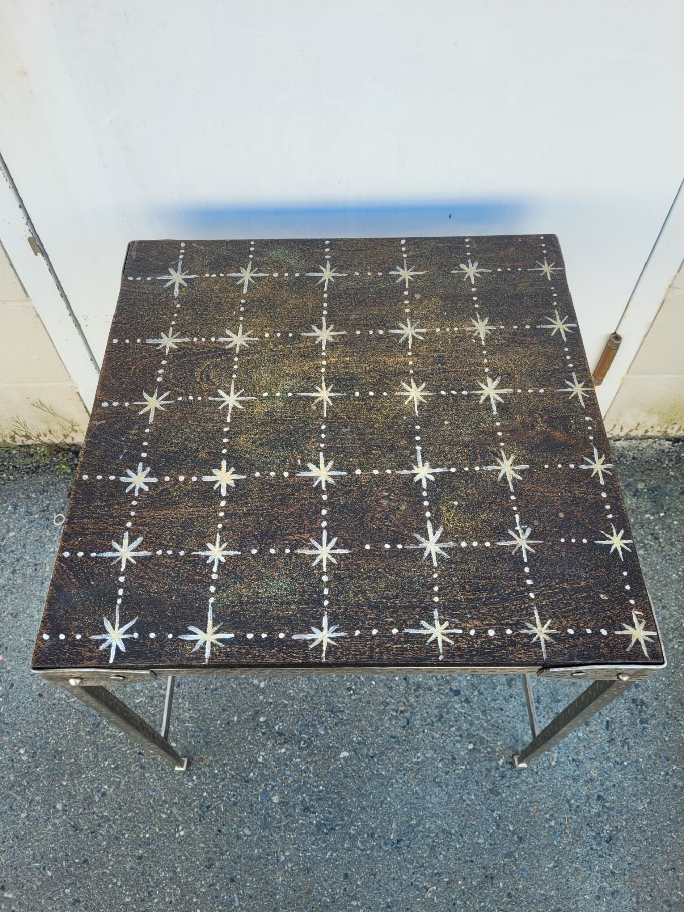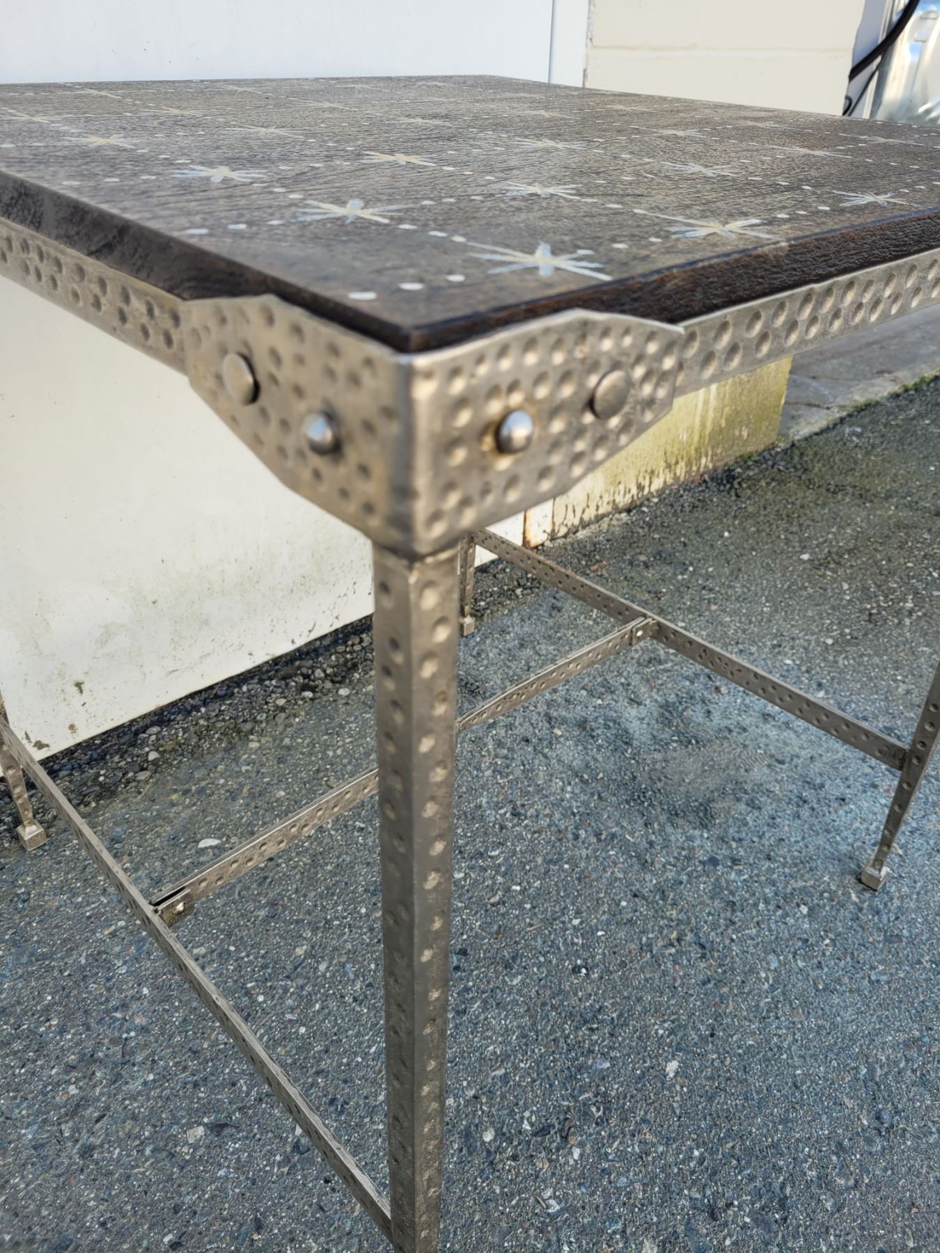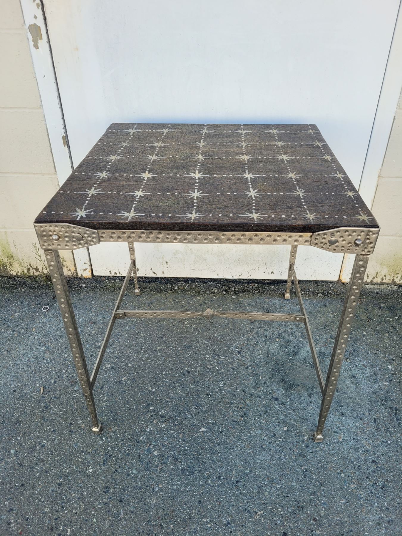 Hammered Stainless Steel Base Accent Table