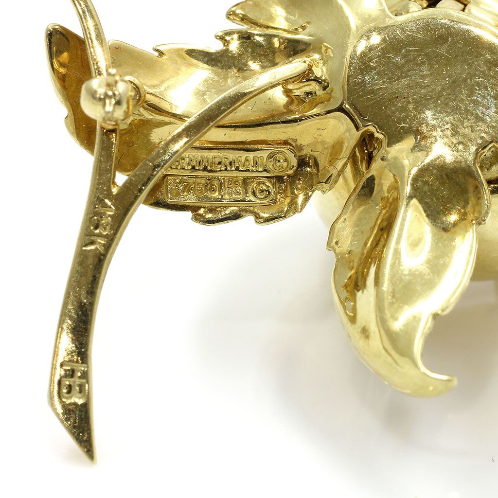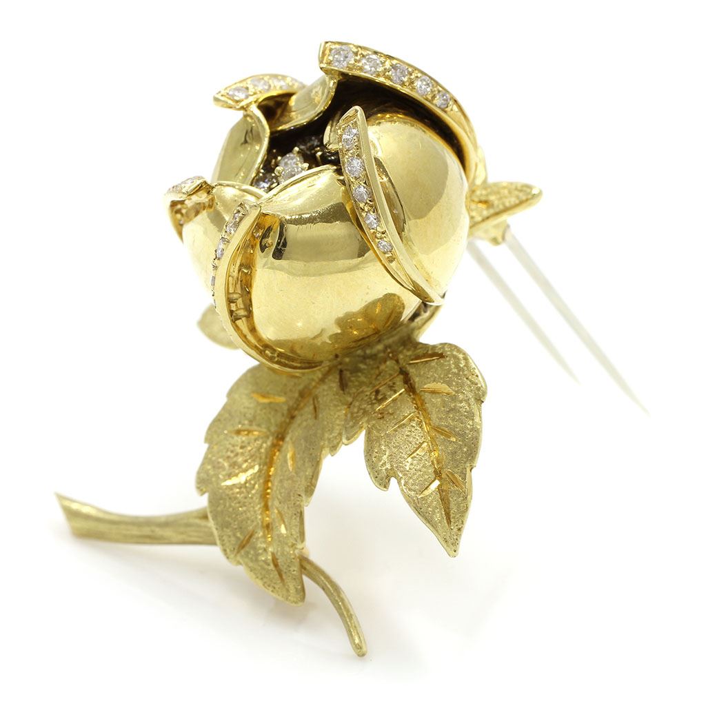 Hammerman Brothers 18k Gold Diamond Pin. Petals can be open & close.
