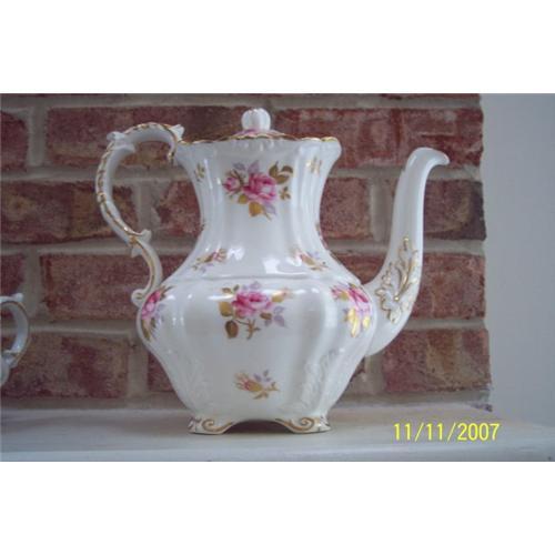 From Hammersley comes this very large coffee pot in the Lady Valerie pattern, a very pretty and unusual one. It holds 6+ cups, and is in excellent undamaged condition. I can provide additional photos on request.