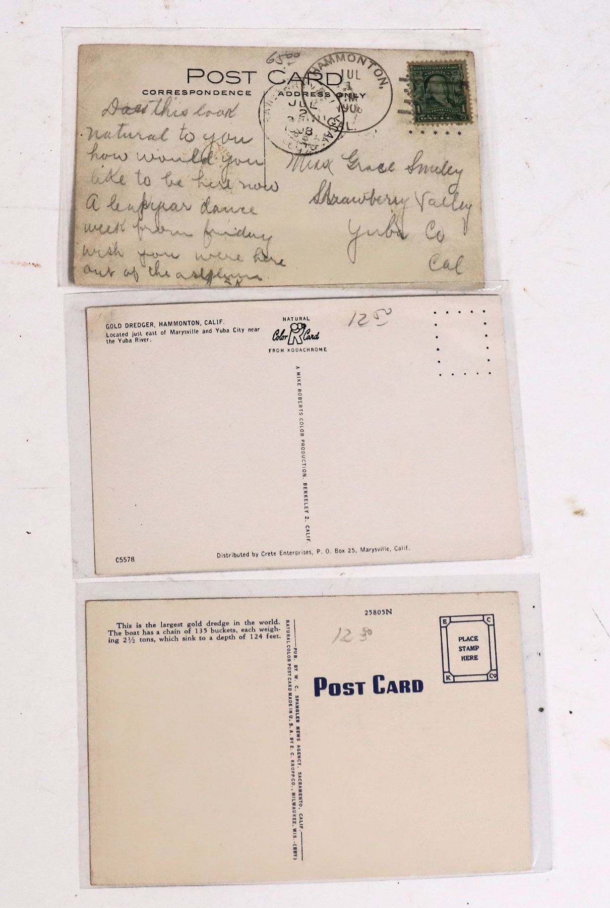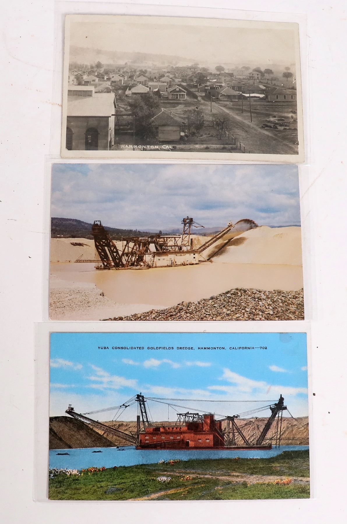 Lot of 3. One very rare wht. border RPC (?) birdseye view of Hammonton, Calif. Named after the founder of Hammon Dredging Co. Wendall P. Hammon. Also included are two borderless , color post cards of of Hammon dredges. Check the Philatelic section for additional post cards. California 1906 Ken Prag Collection