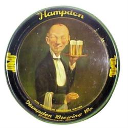 Hampden Brewing Co. litho on tin tray, "Who Wants the Handsome Waiter?", Willimansett, Mass., 1940's, VG condition, 13"Dia.