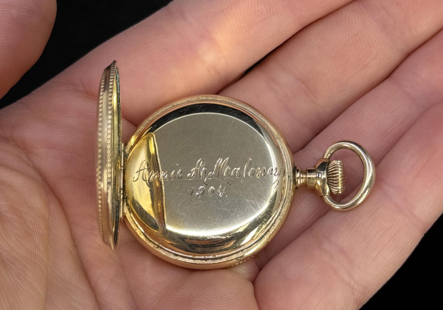 Grade Molly Stark. Size 3/0s, 7j, made in 1901. Broken crystal, seized movement.