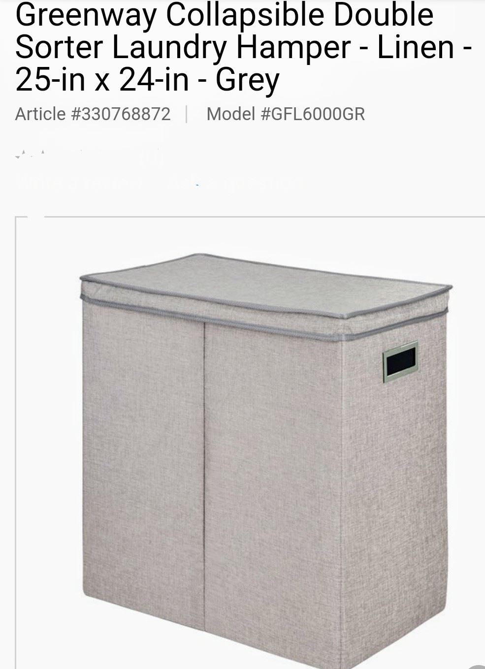Collapsible double sorter, linen material in grey, space-efficient design, new.