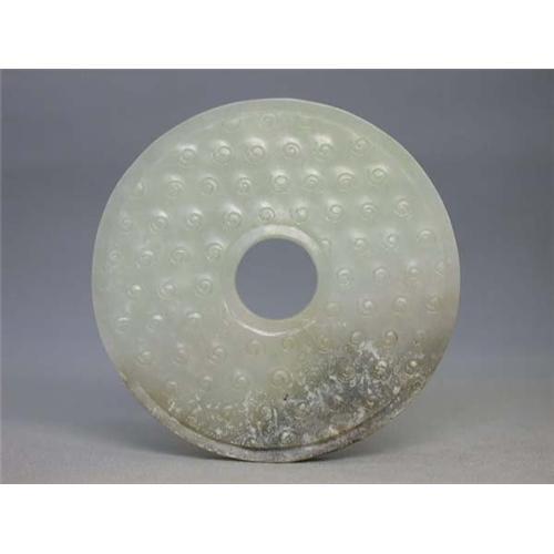 <tr><td>Title:Han Dynasty White Jade Bi w/ Gran Patterns</td></tr>