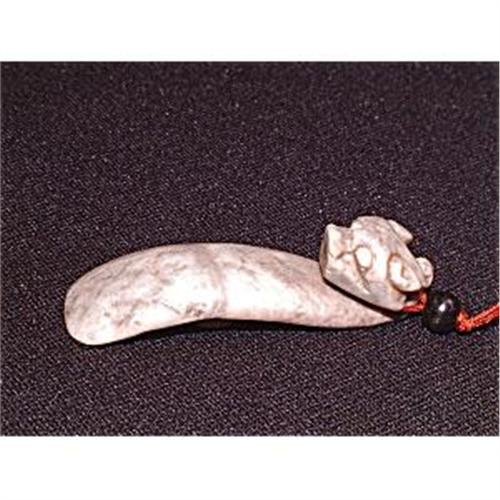 Ancient jade carving dating to Han period. It represent a gray jade belt hook with zoomorphic design of an unicorn. Size: 2.8 X 0.8 inches (7 X 2 cm.). Estimated value: $1500.