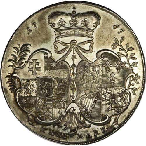 <B>Hanau-Munzenberg. Wilhelm IX 1/2 Taler 1763IIE,</B></I> under the Regency of Mary of England, KM91, nice XF with problem free surfaces and some remaining luster.<BR><I>From the Blue Ridge Collection</B></I><BR><BR><b>Shipping:</b> Coin/Currency (<a target="_blank" href="http://www.heritageauctions.com/common/shipping.php">view shipping information</a>)