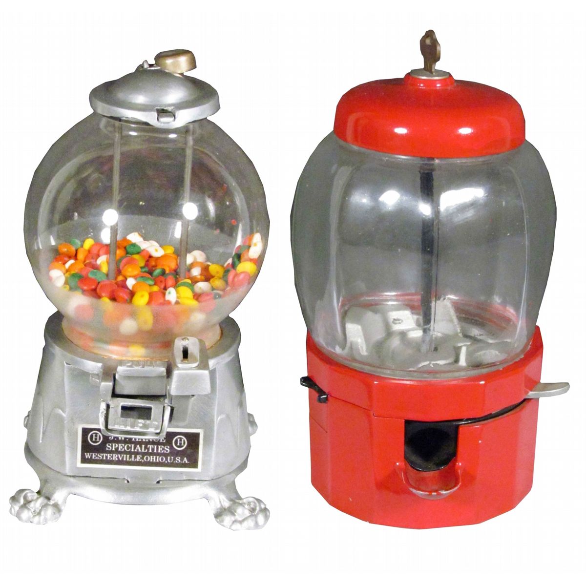 Hance "Rex" Breath Pellet Vendor. J.W. Hance Mfg. Co. Excellent all original working condition. 8 1/2 inches tall. And a Gum vendor. Maker unknown. Repainted condition comes with key. 8 1/2 inches tall.