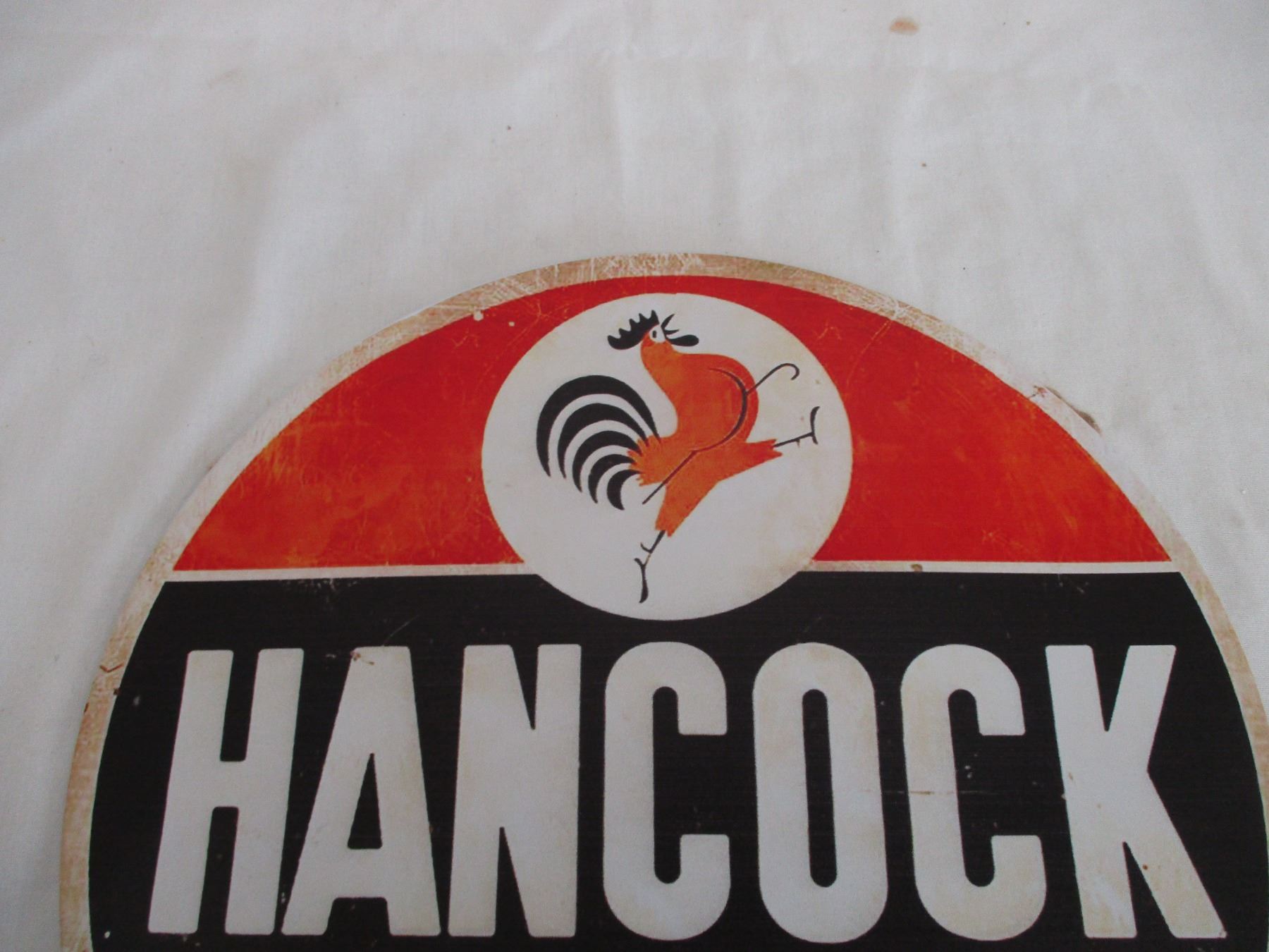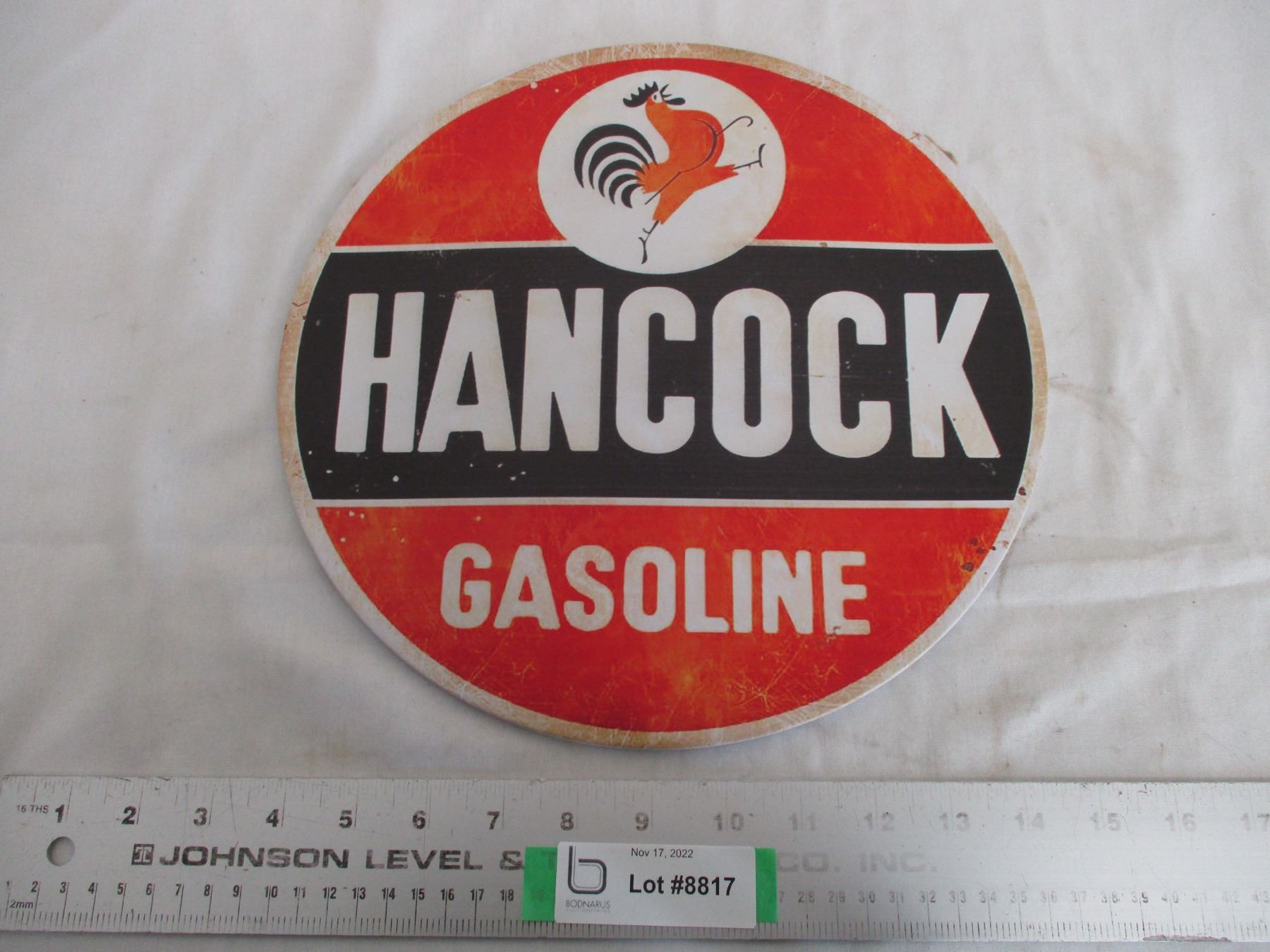 Hancock gasoline 11.5" round tin sign