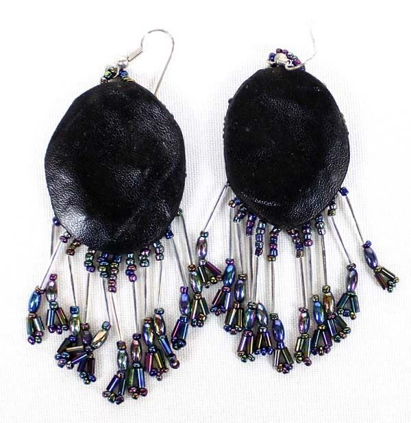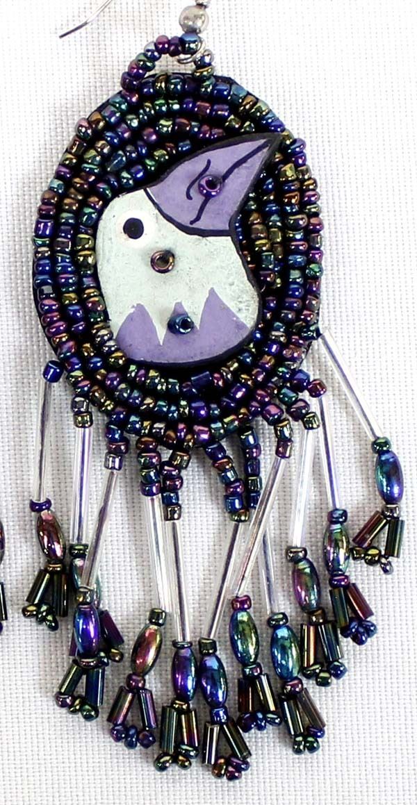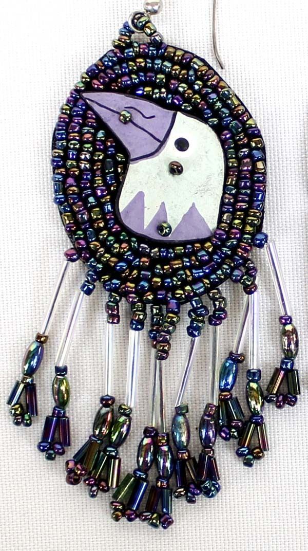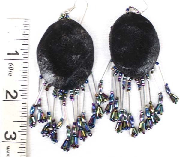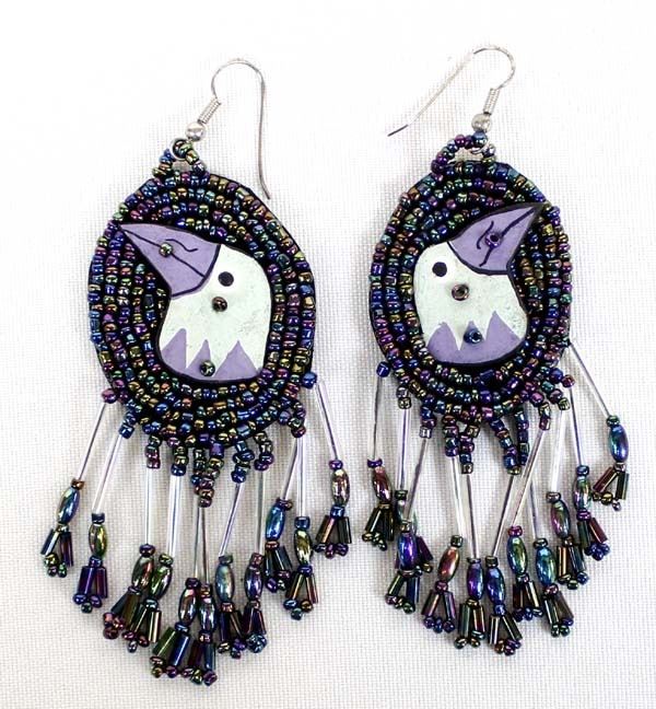 Hand Beaded Earrings with Metal Bird Embellishments, measure 4''L which includes the wire, possibly Native American