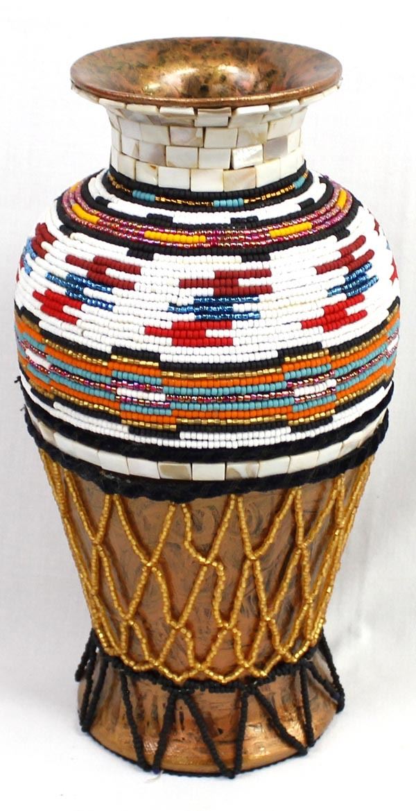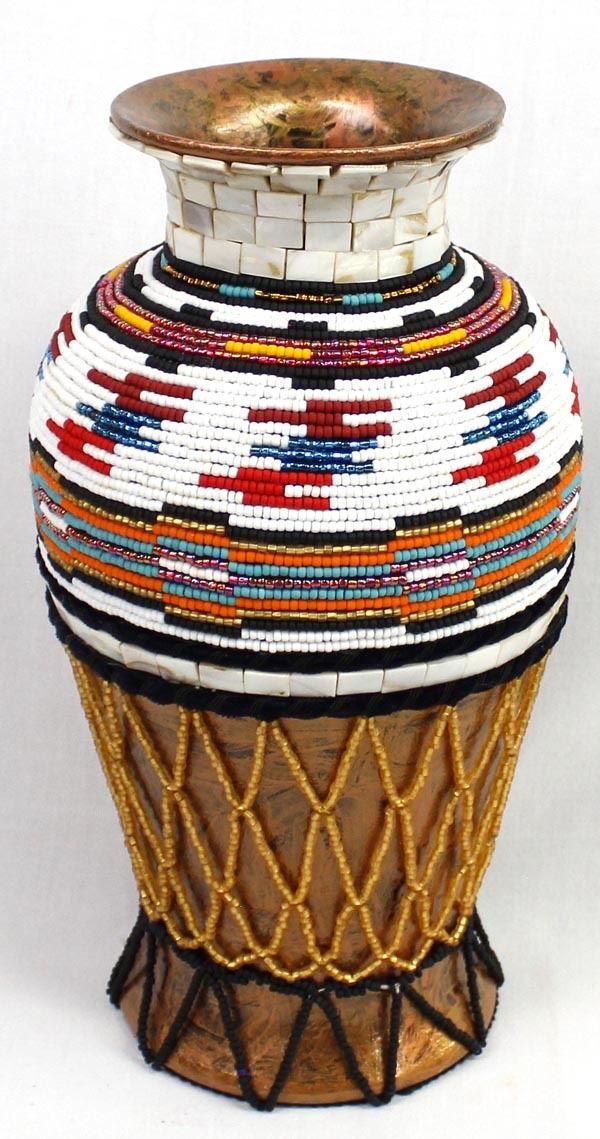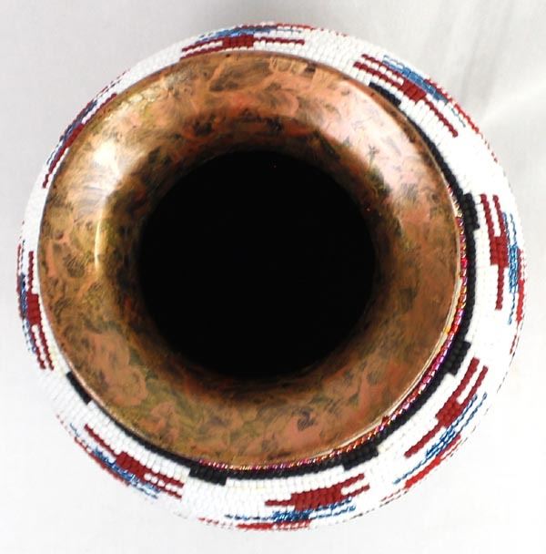 Hand Beaded Pottery Vase by Kathy Kills Thunder measures 9" x 14"