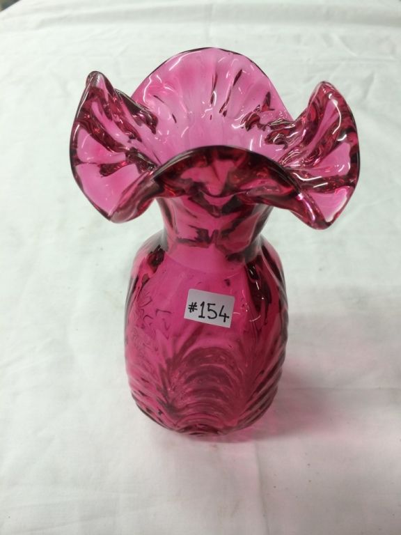Hand Blown Cranberry Glass Vase (7" high)