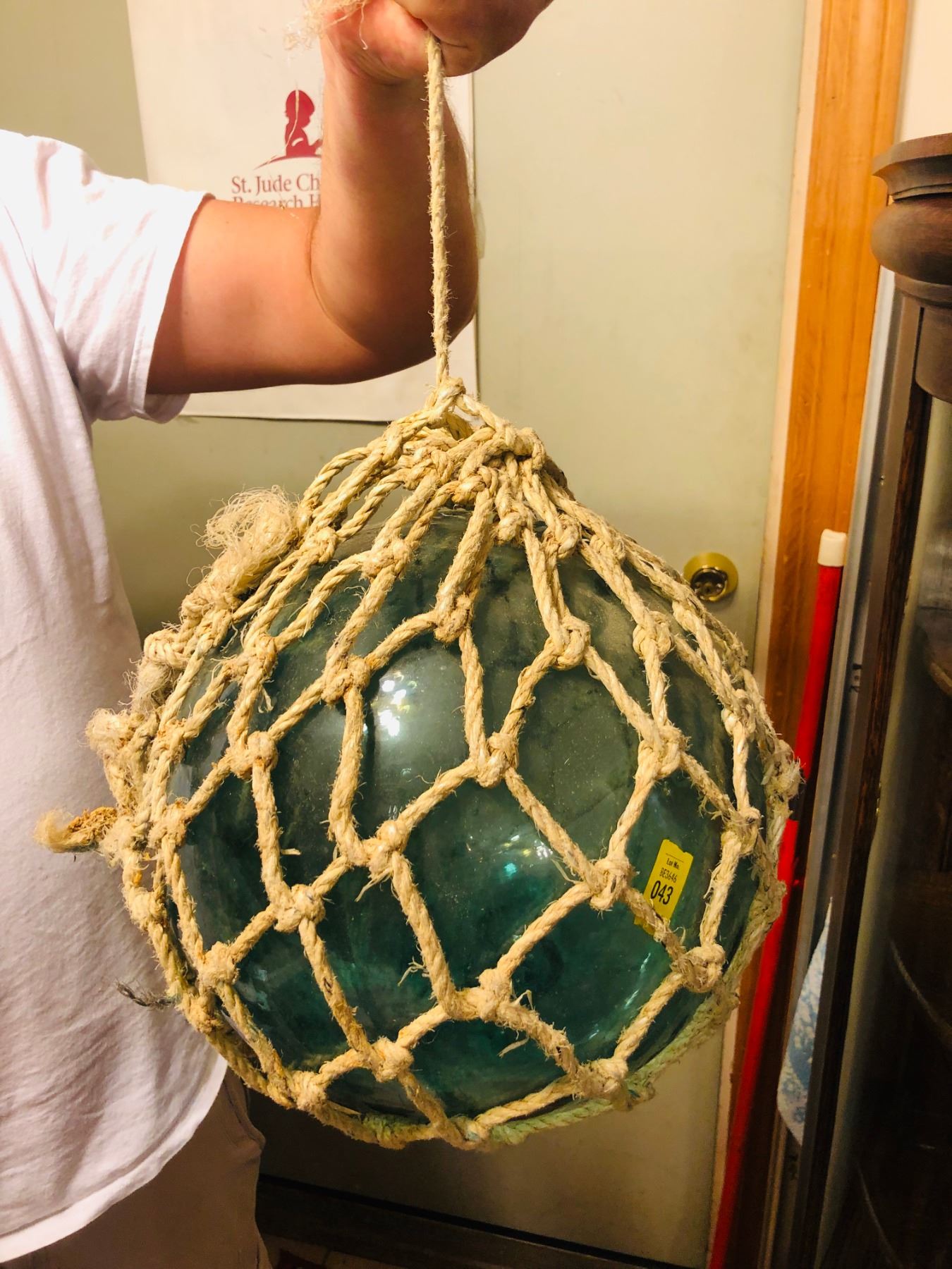 Hand Blown Floating Glass Lobster/Fishing Buoy. Was used for decoration in a nautical family's home, hung from a ceiling.