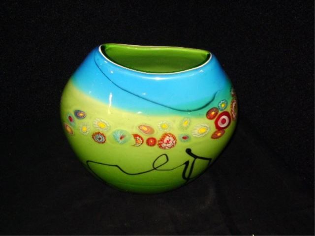 Hand-Blown Glass Case, in Light Blue and Green w/ African Trade Beads Embedded Inside 6 1/2"x6 1/2"