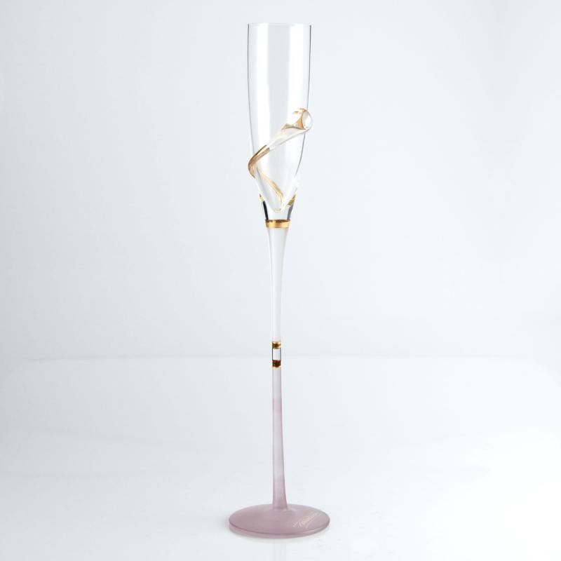 Ion Tamaian creates stunning glass pieces that are both elegant and functional. This is a hand blown glass champagne flute, hand signed by the artist! A Certificate of Authenticity does not accompany this piece. Measures approx. 2" (opening) x 15" (height), 3" (base). ** Please note: there is an imperfection in the body of the flute (small bubbles) which are a natural artifact of the glass making process. **