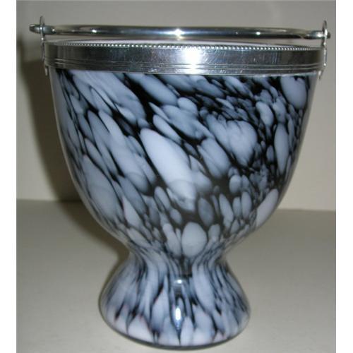 A really attractive hand blown ice bucket dating to around the 1920's having been mounted with a silver plated collar and swing handle.