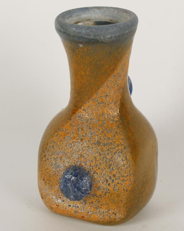 Excavated from Roman empire circa 27 B.C.-467 A.D. No chips or cracks. 4-1/2" tall x 3" diameter.
