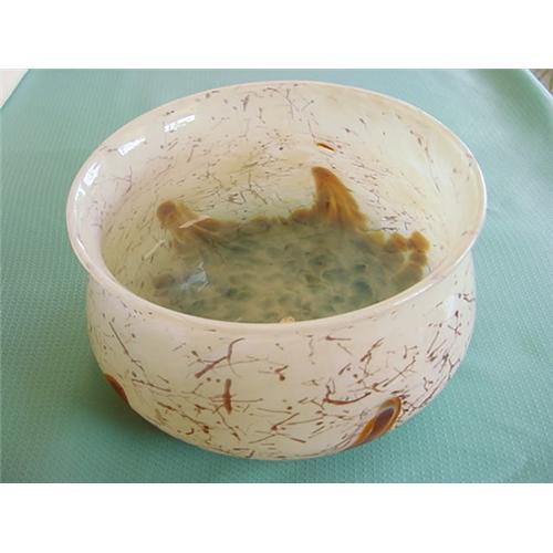 <tr><td>Title:Hand Blown Mottled Glass Bowl</td></tr>