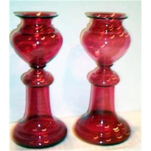 <tr><td>Title:Hand Blown Pair Monumental Cranberry Vases</td></tr>