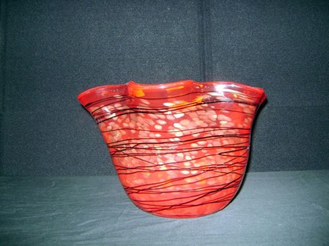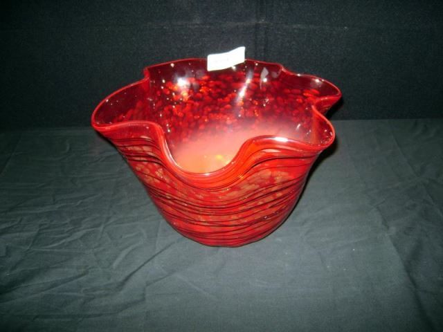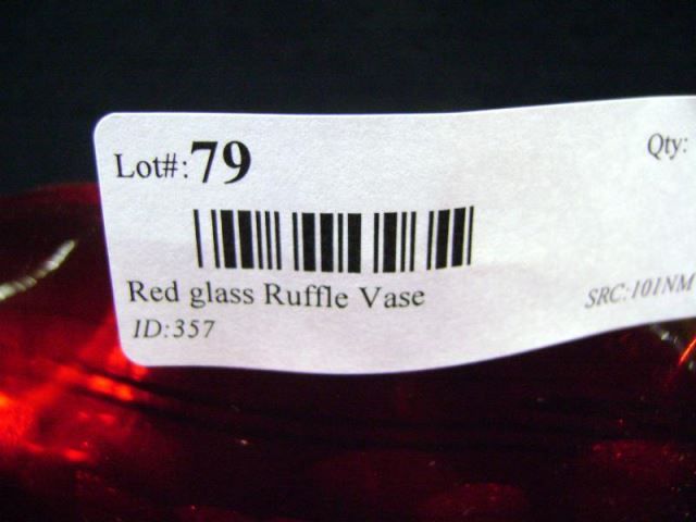 Hand-Blown Red Ruffled Glass Vase 8"x13" Retail: $380.00