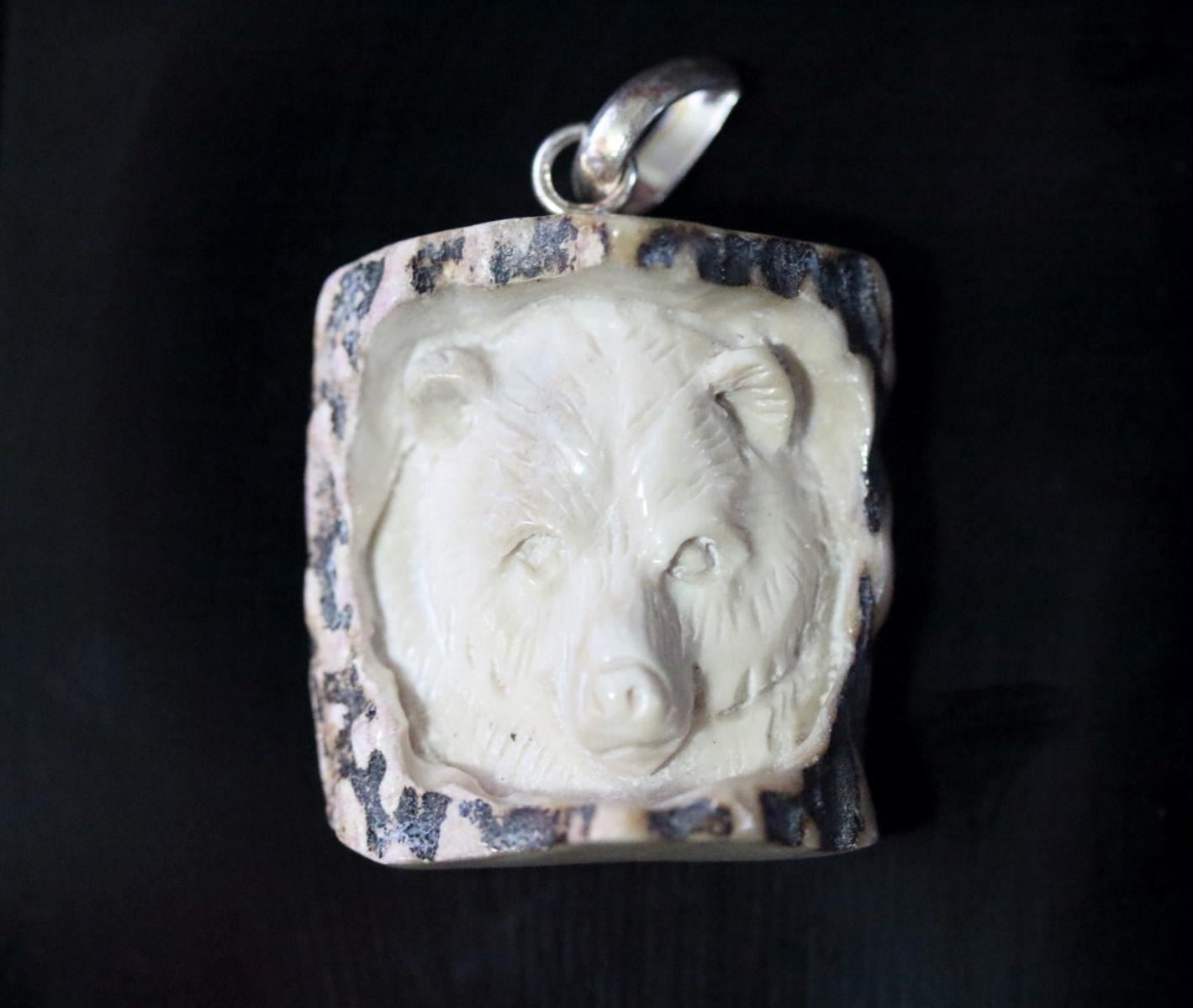 Hand Carved Antler Bear Pendant...... Size 32 x 25 MM