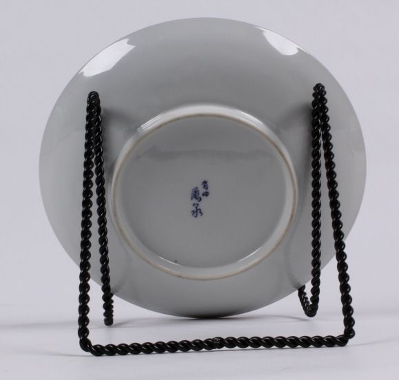 This is a original work of art that has been carved with intricate floral design. Features a center Lotus Blossom having a weaved design and surrounding script. The bottom is hand signed in blue glaze. The dimensions 8 3/8" in diameter and 3/8" tall.