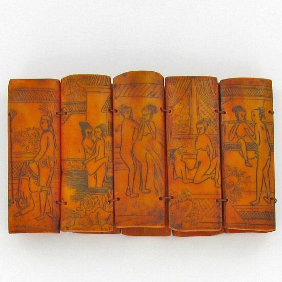 Excellent hand carved set of 10 panels, 14" x 4", dark stained