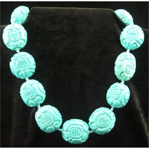 <tr><td>Title:Hand Carved Brazilian Turquoise Chunky Necklace</td></tr>