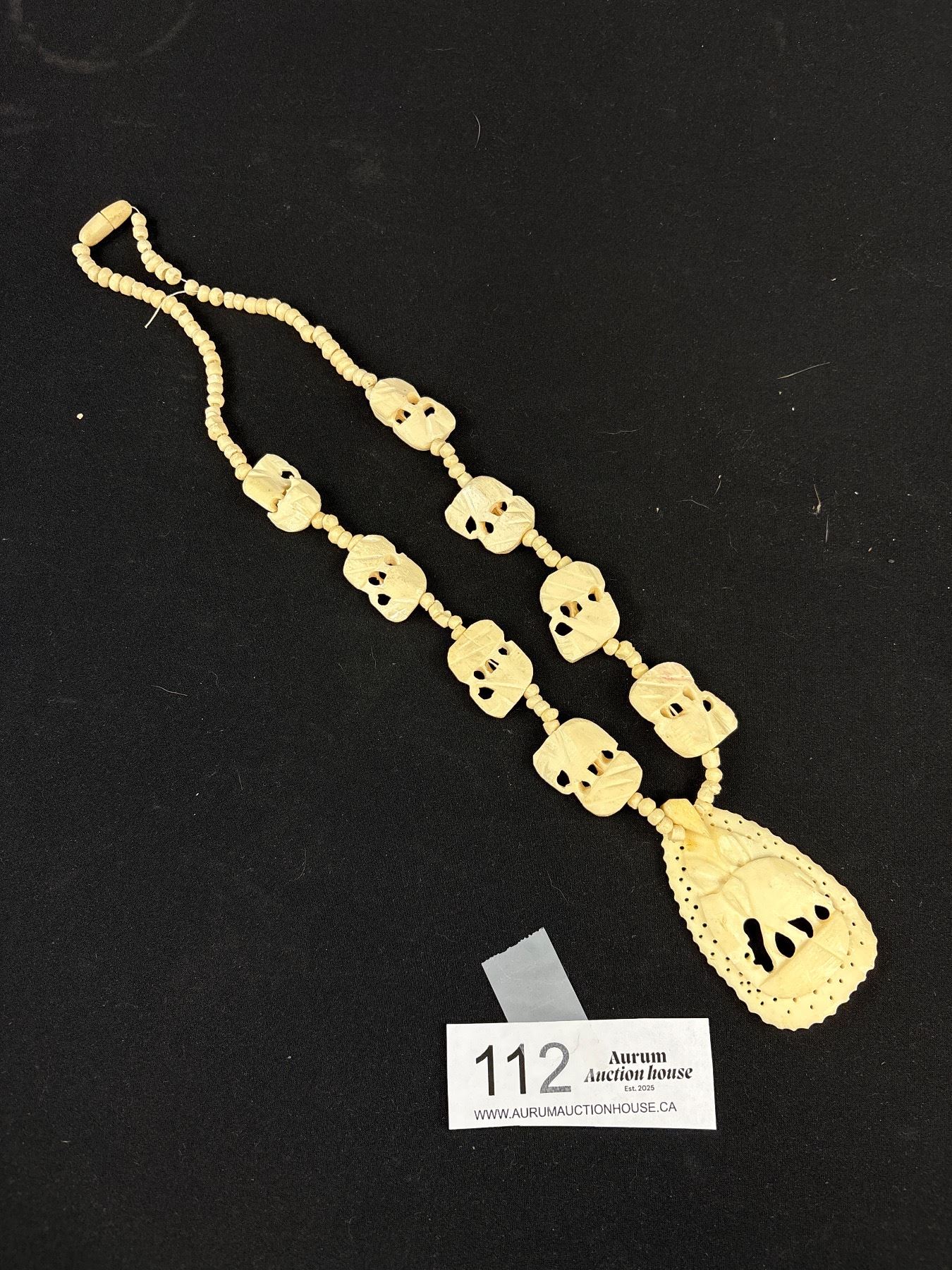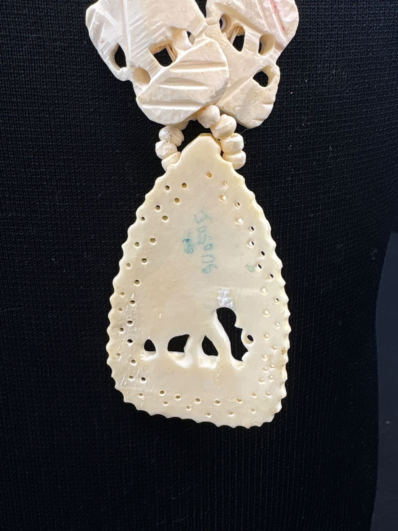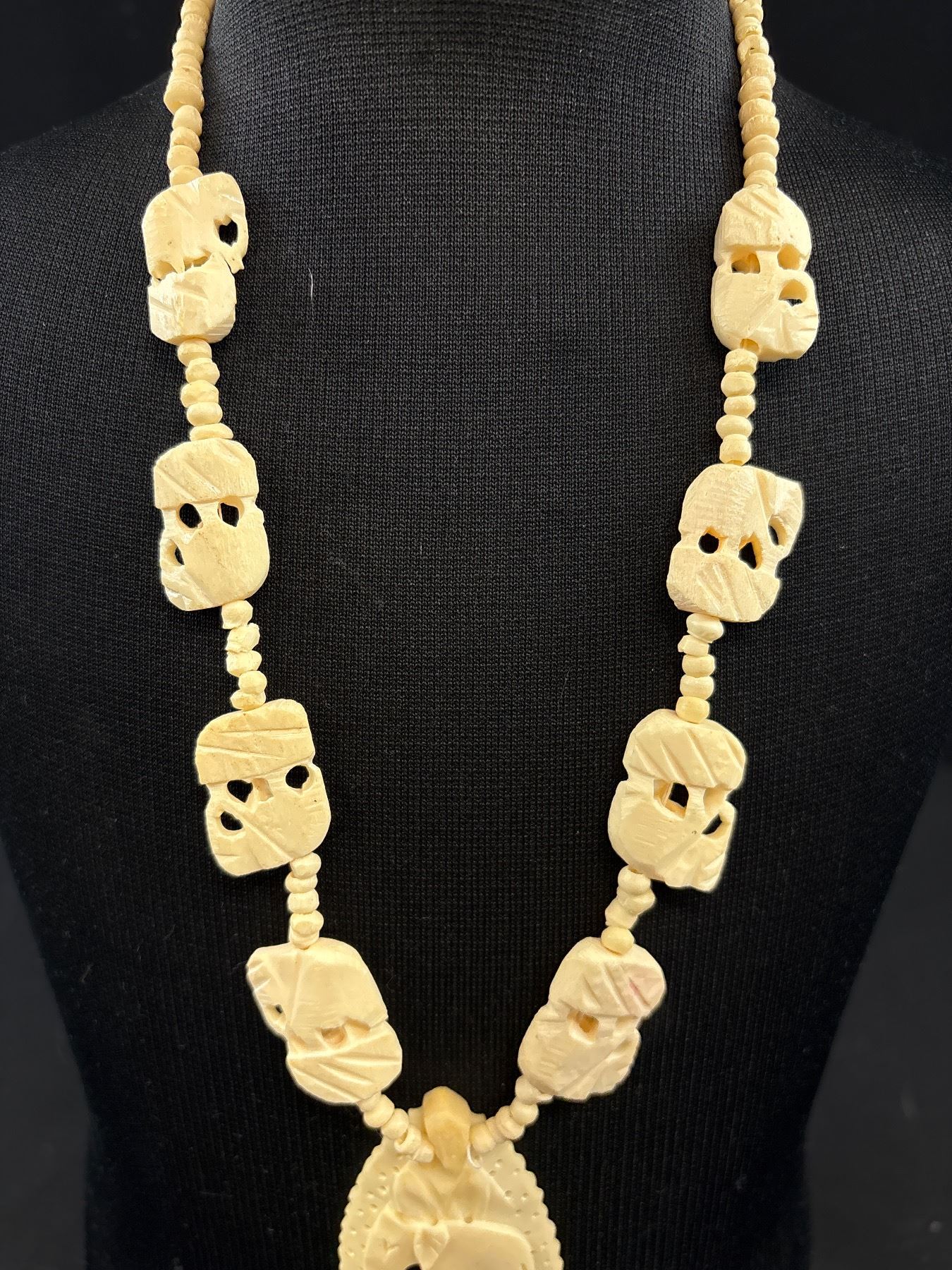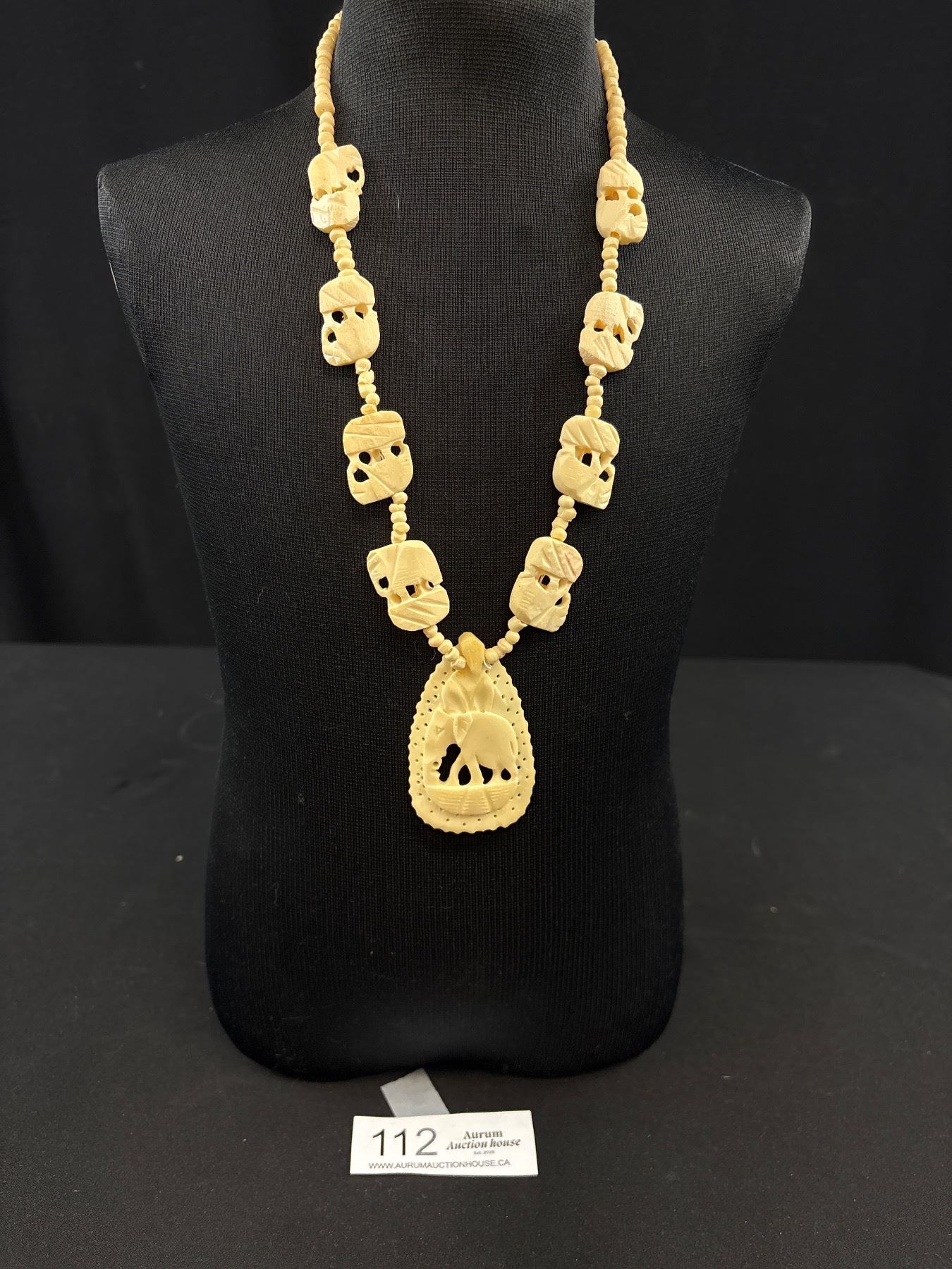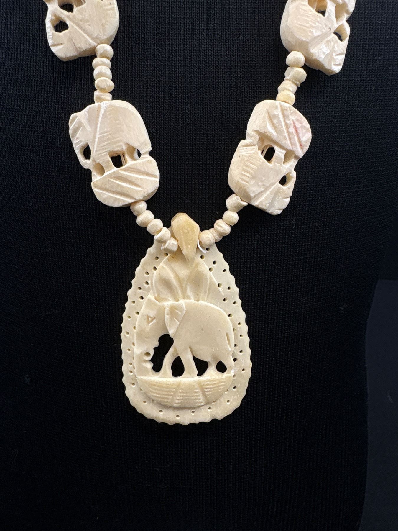 Hand Carved Camel Bone Elephant Pendants + Bead Necklace