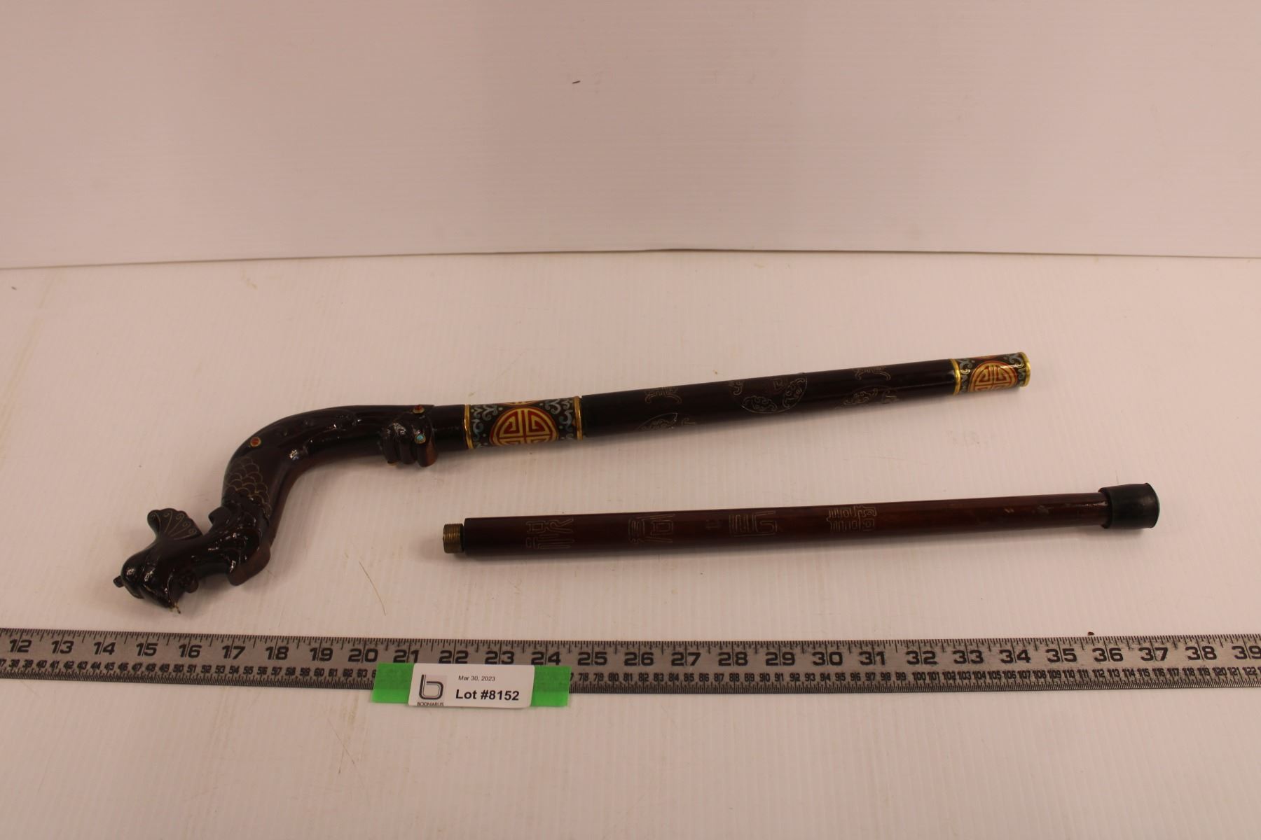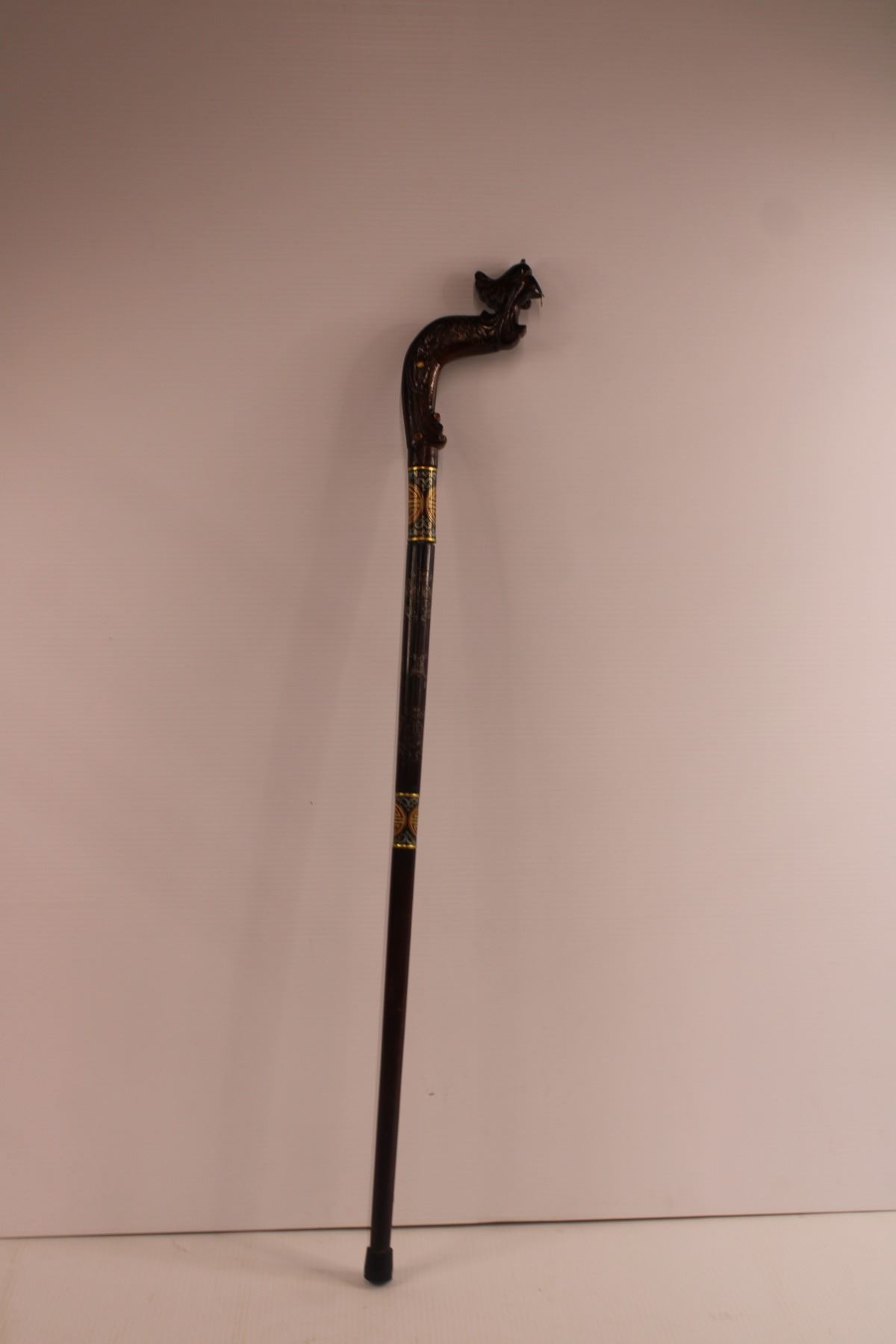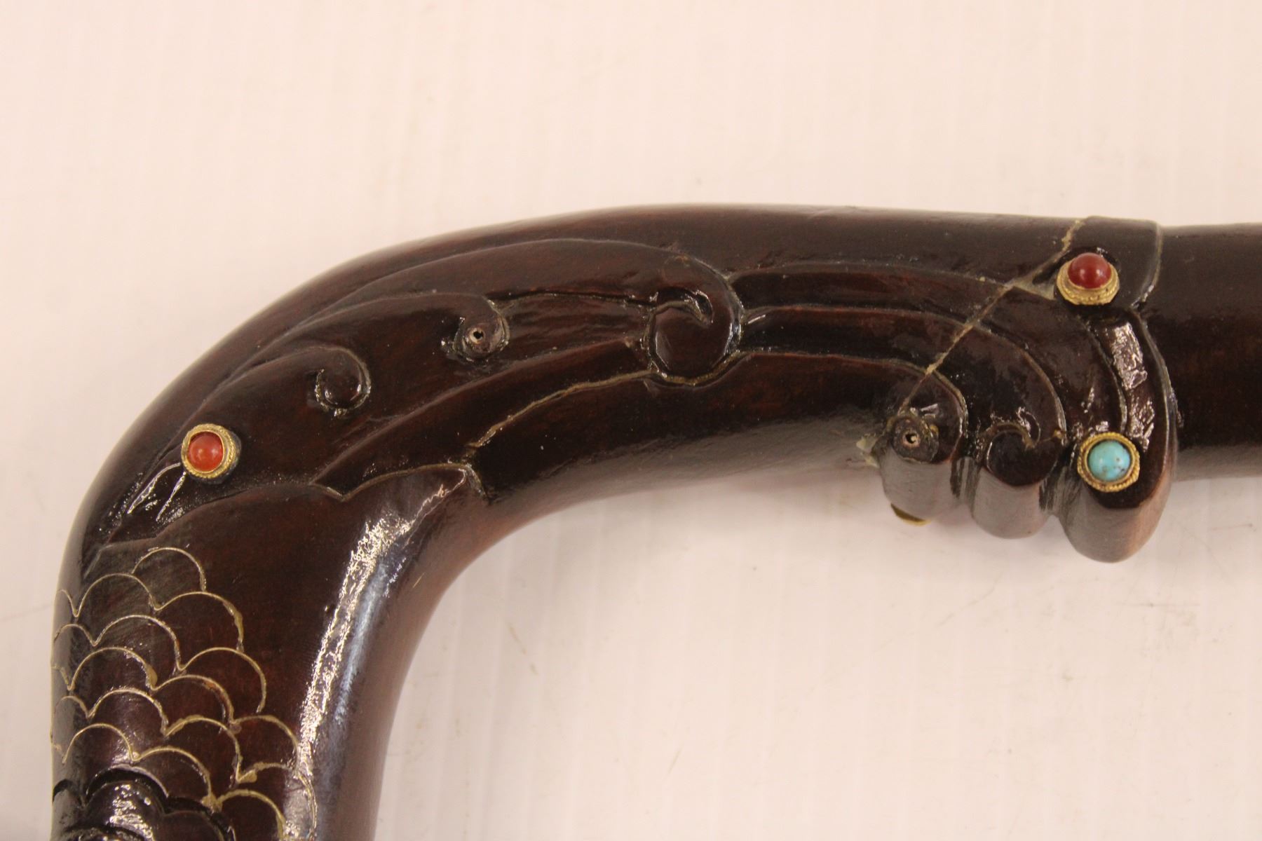 Hand Carved & Decorated Wooden Cane with Jewels (Some Jewels Missing)