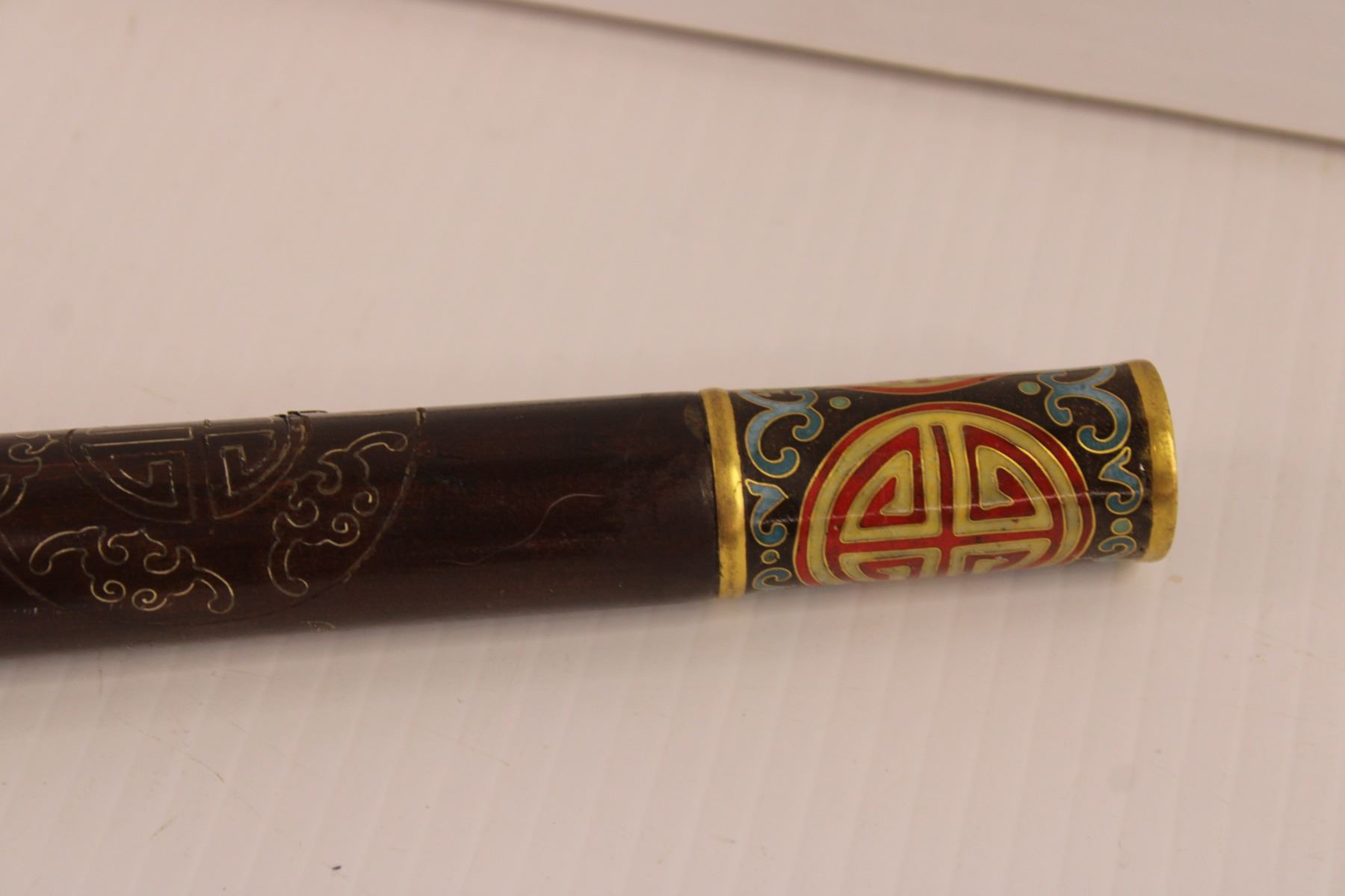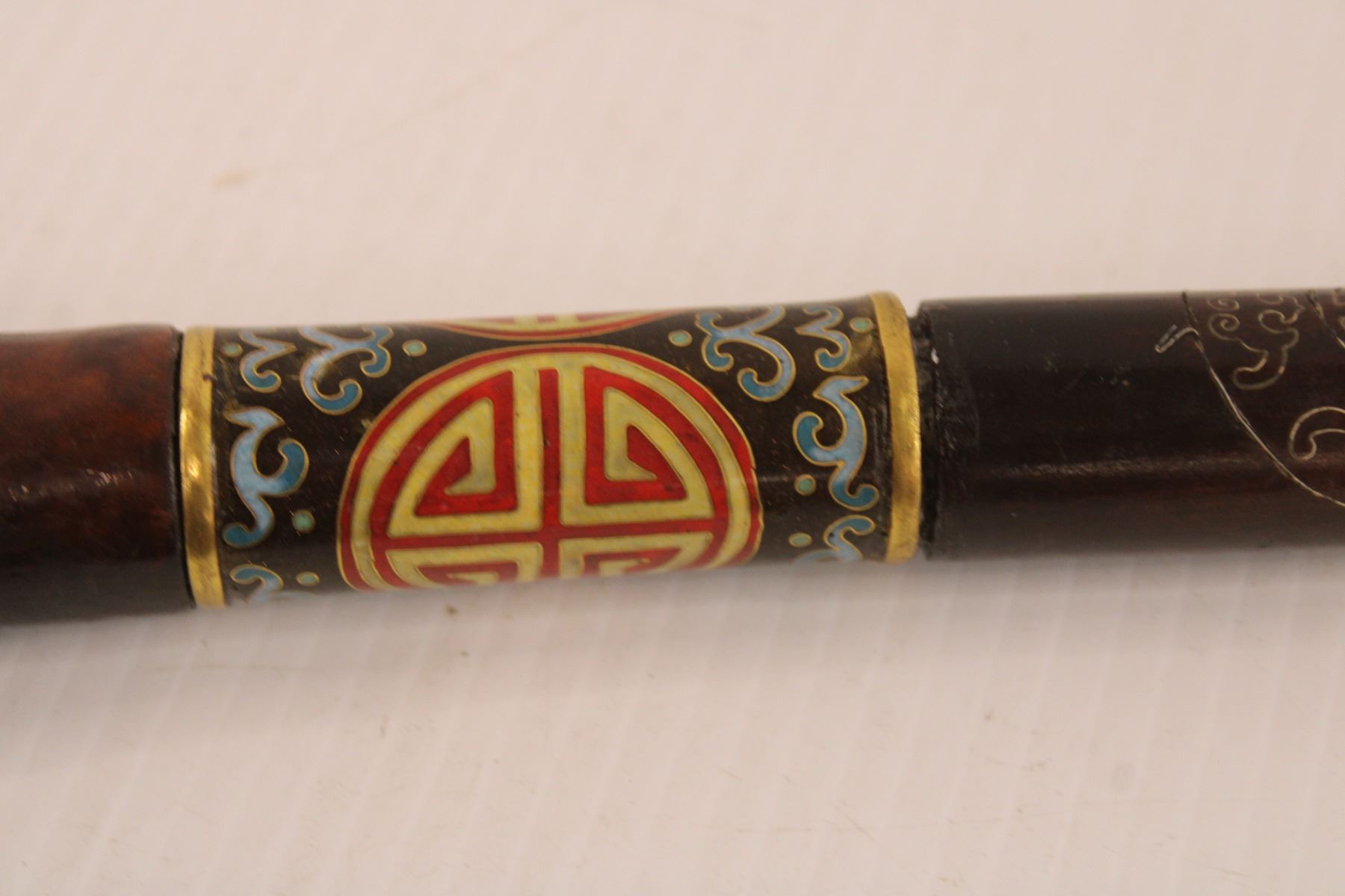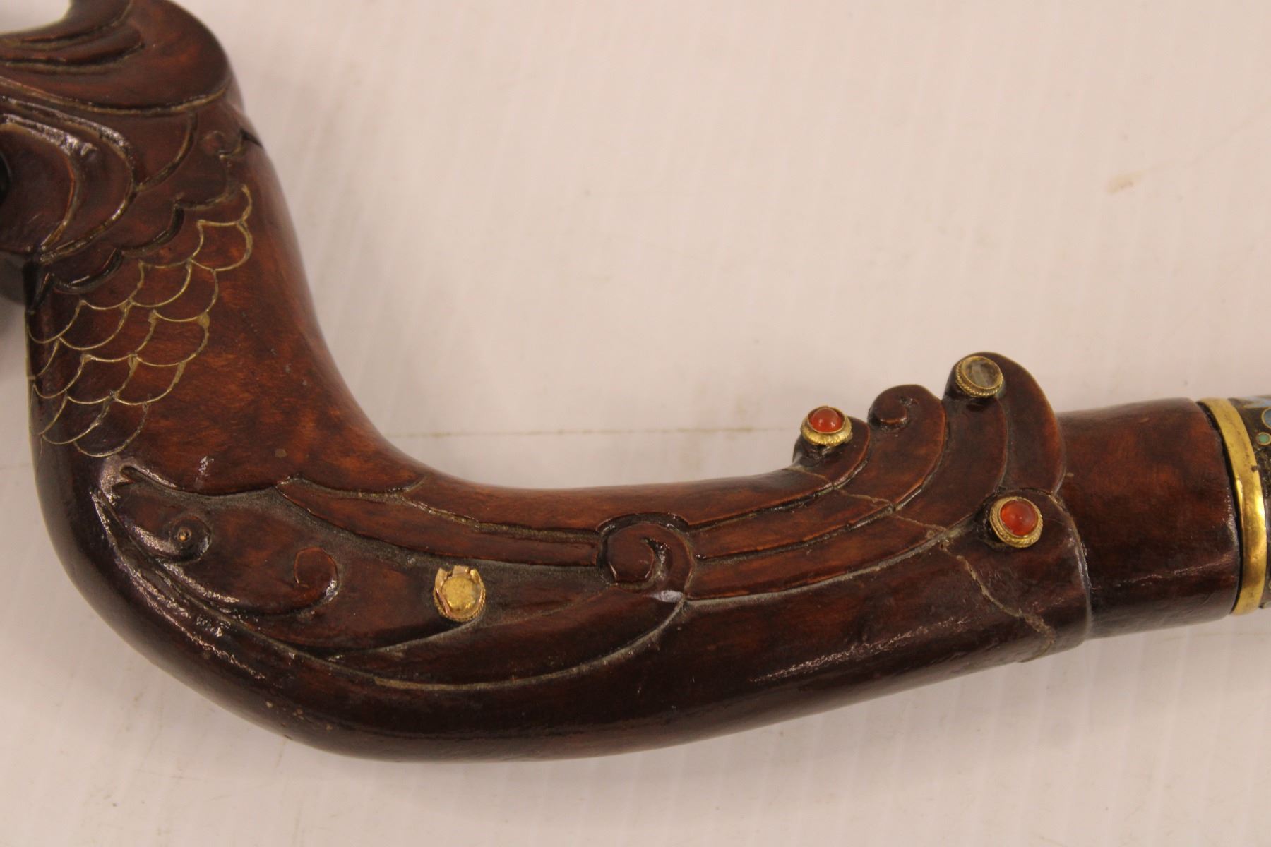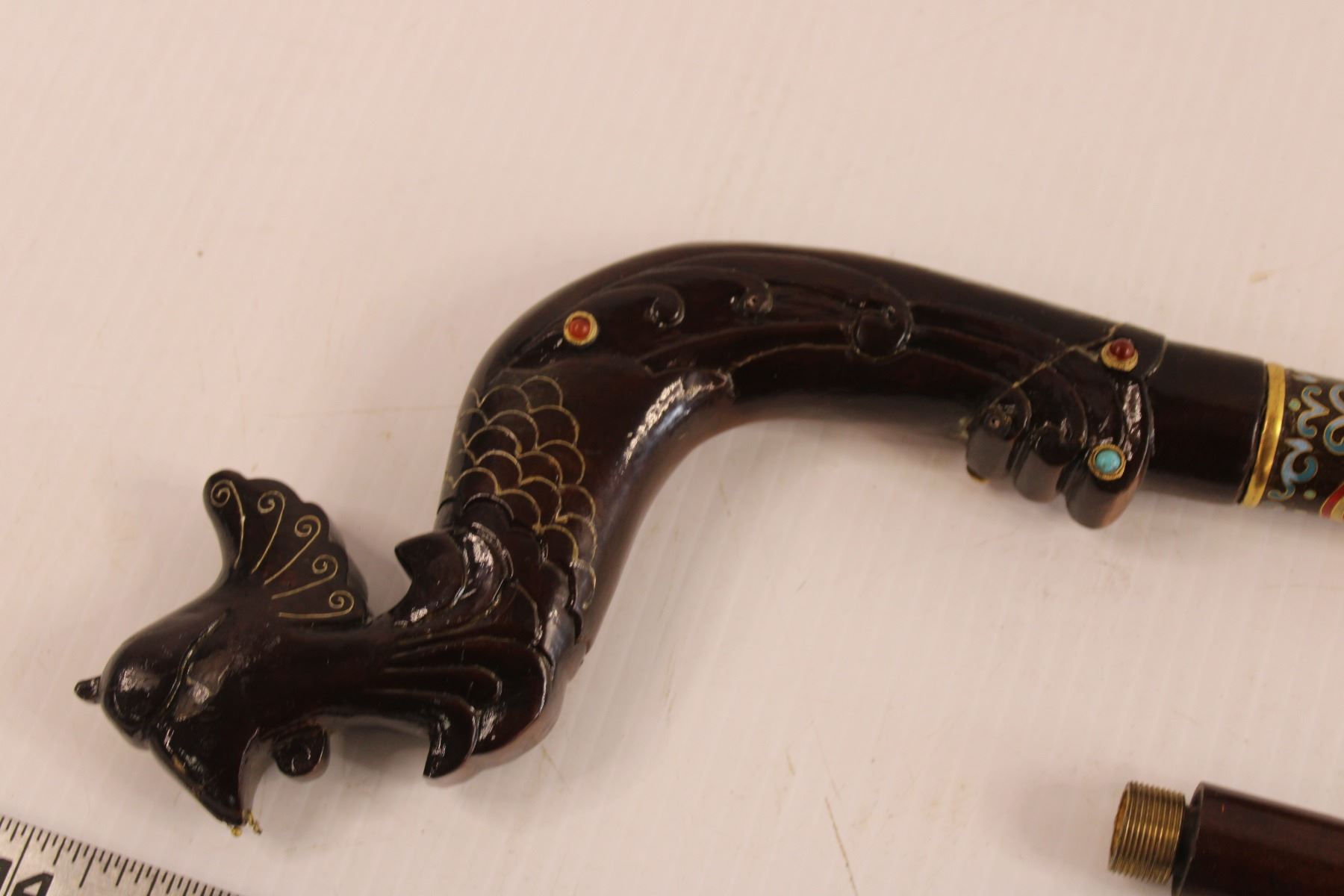 Hand Carved & Decorated Wooden Cane with Jewels (Some Jewels Missing)