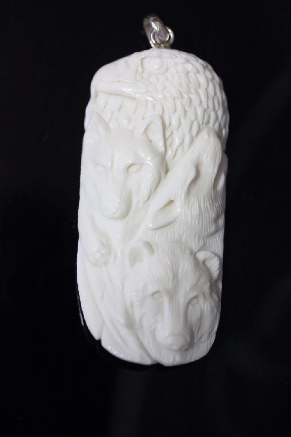 Hand Carved Pendant...eagle, bear& Wolf carving....size 60 mm