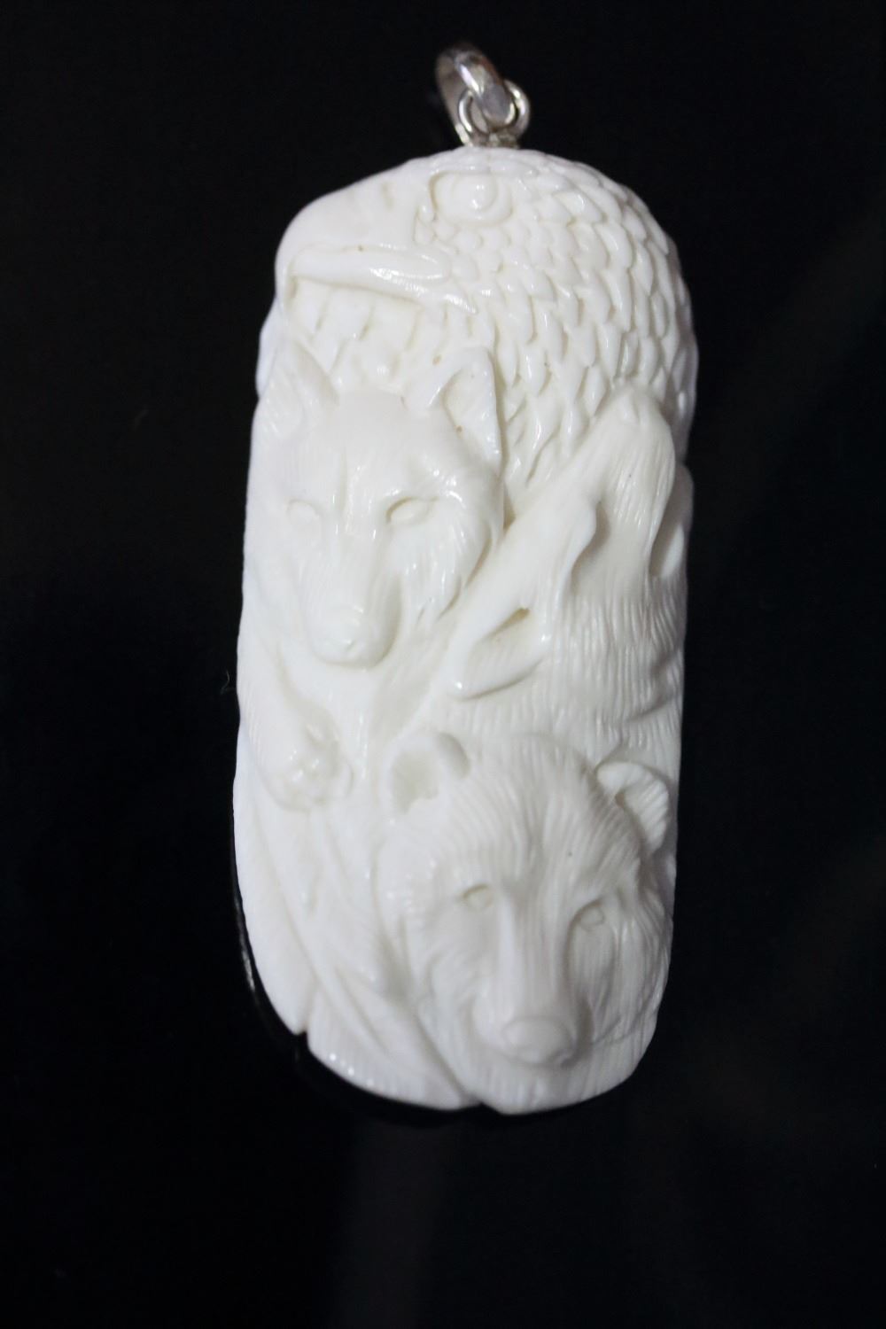 Hand Carved Pendant...eagle, bear Wolf carving....size 60 mm
