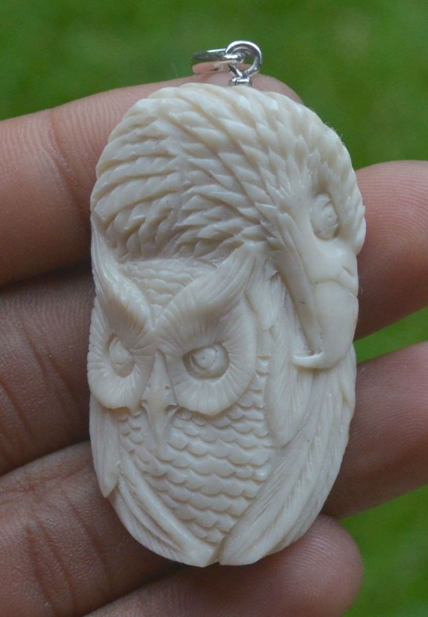 Hand Carved Eagle Owl Pendant....47 mm;