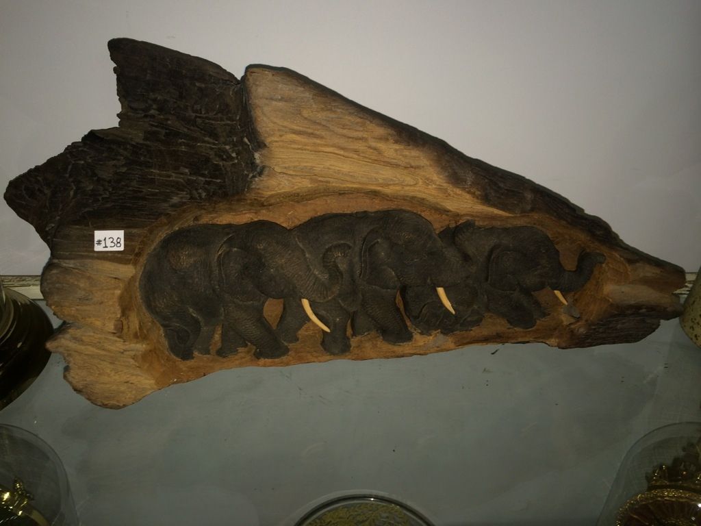 Hand Carved Elephants in Wood Display Plaque (18.5" long)