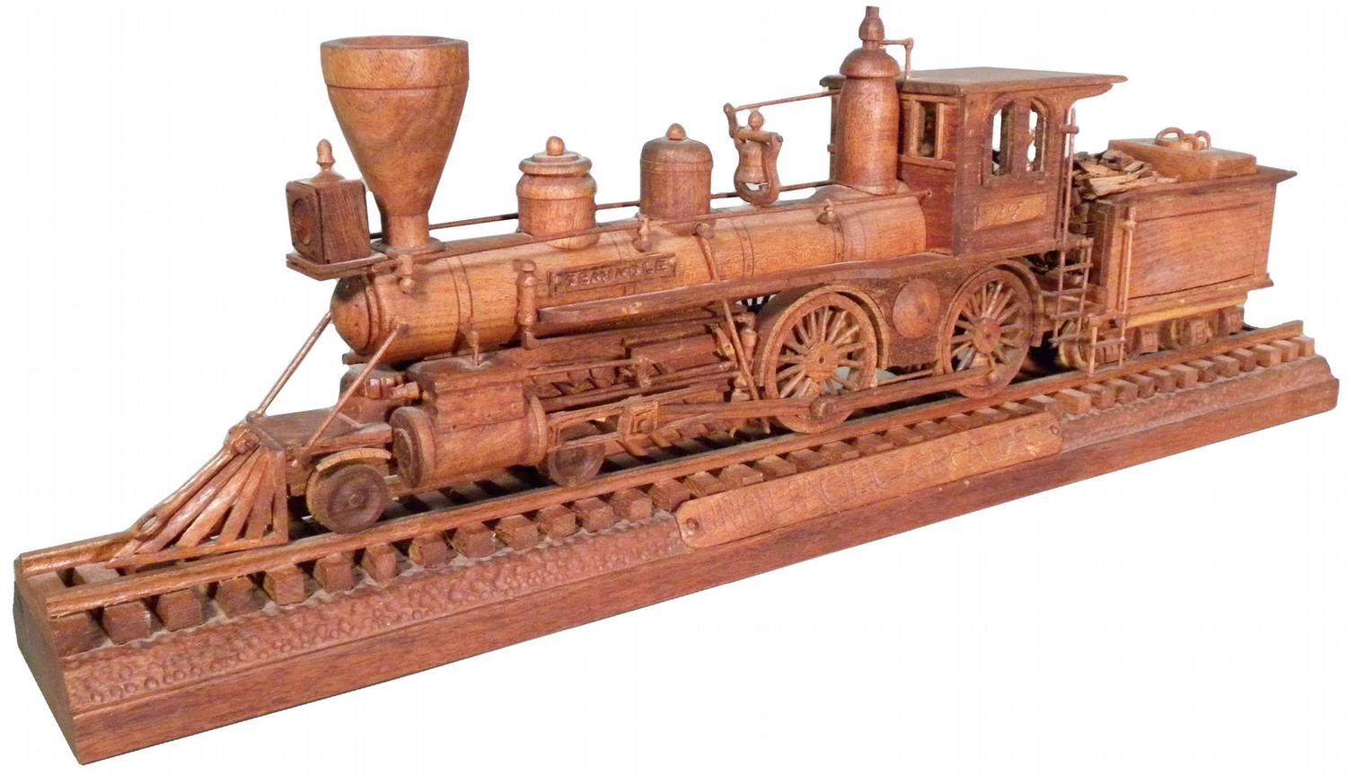 Hand Carved Folk Art, Walnut Train. Dick Brown artist, Tucson 1982. Depicting Union Pacific Ca. 1867. Excellent condition. 26 inches long.