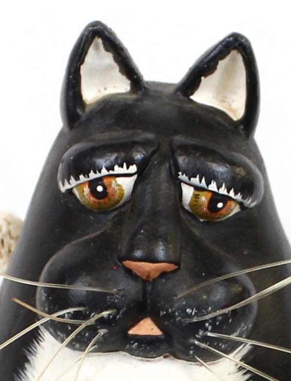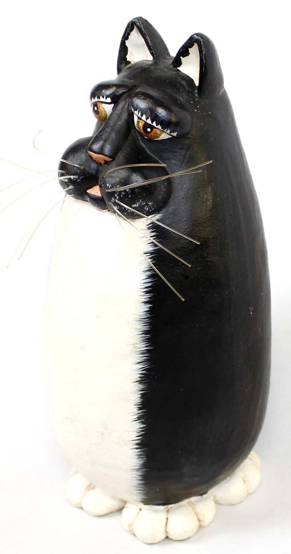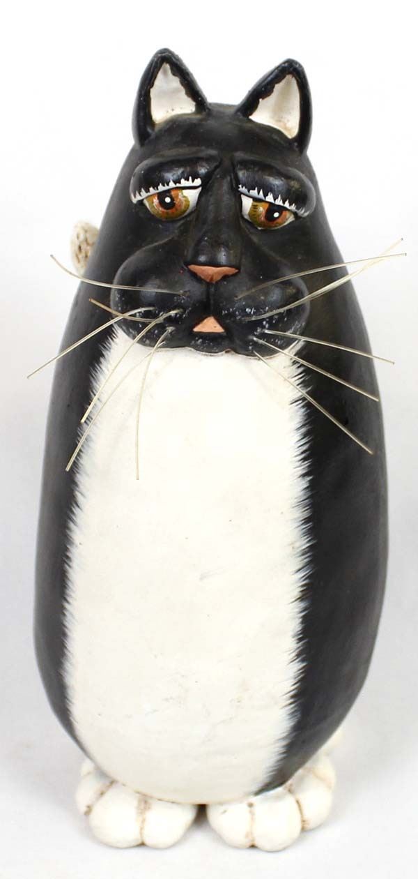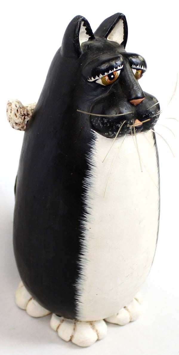 Hand Carved Hand Painted Wooden Cat. He's 9'' Tall.
