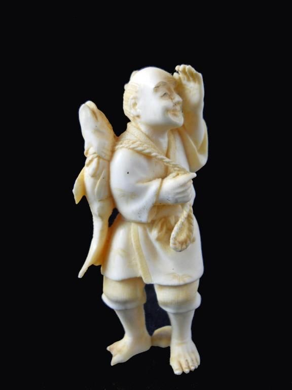 Hand Carved Ivory Netsuke Figure measures 3 inches tall.