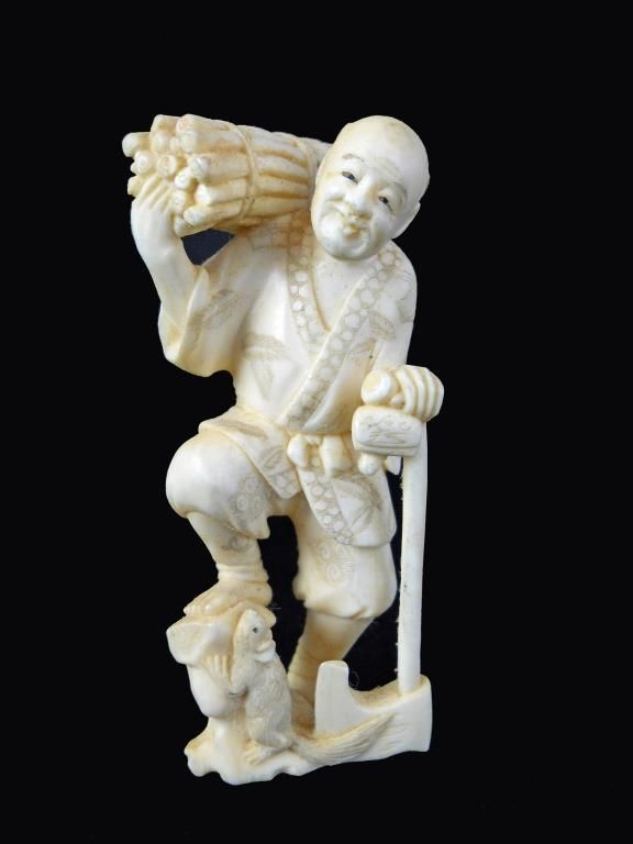 Hand Carved Ivory Netsuke Figure measures 3 inches tall