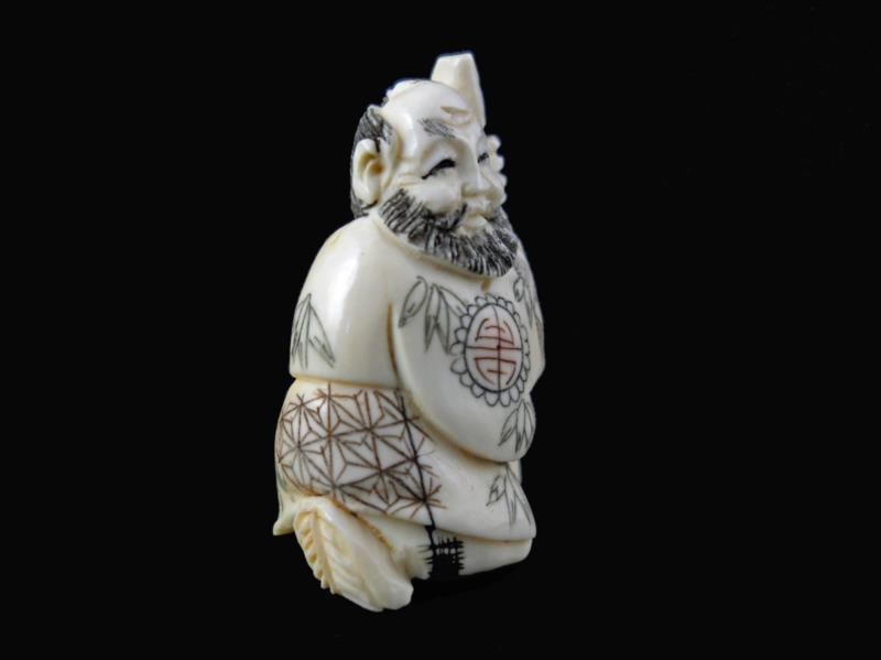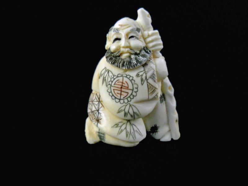 Hand Carved Ivory Netsuke Figure measures 1 1/2 inches tall