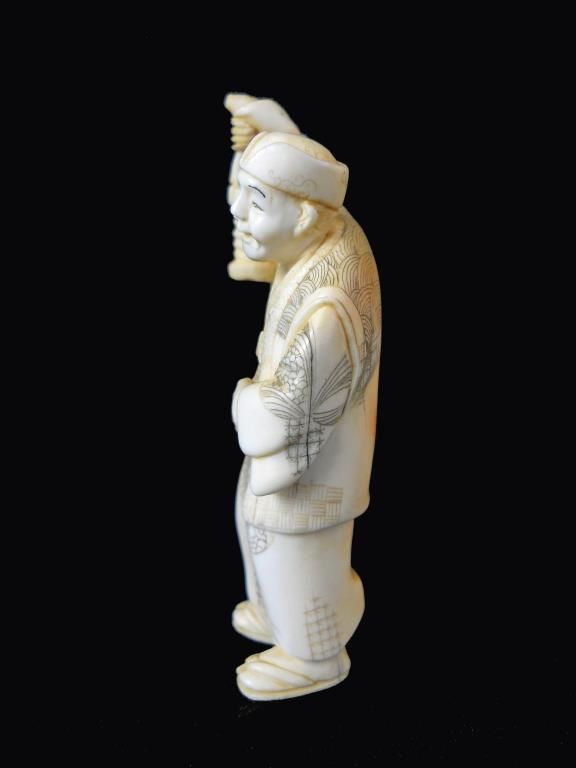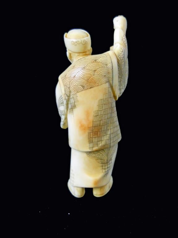 Hand Carved Ivory Netsuke Figure measures 3 inches tall